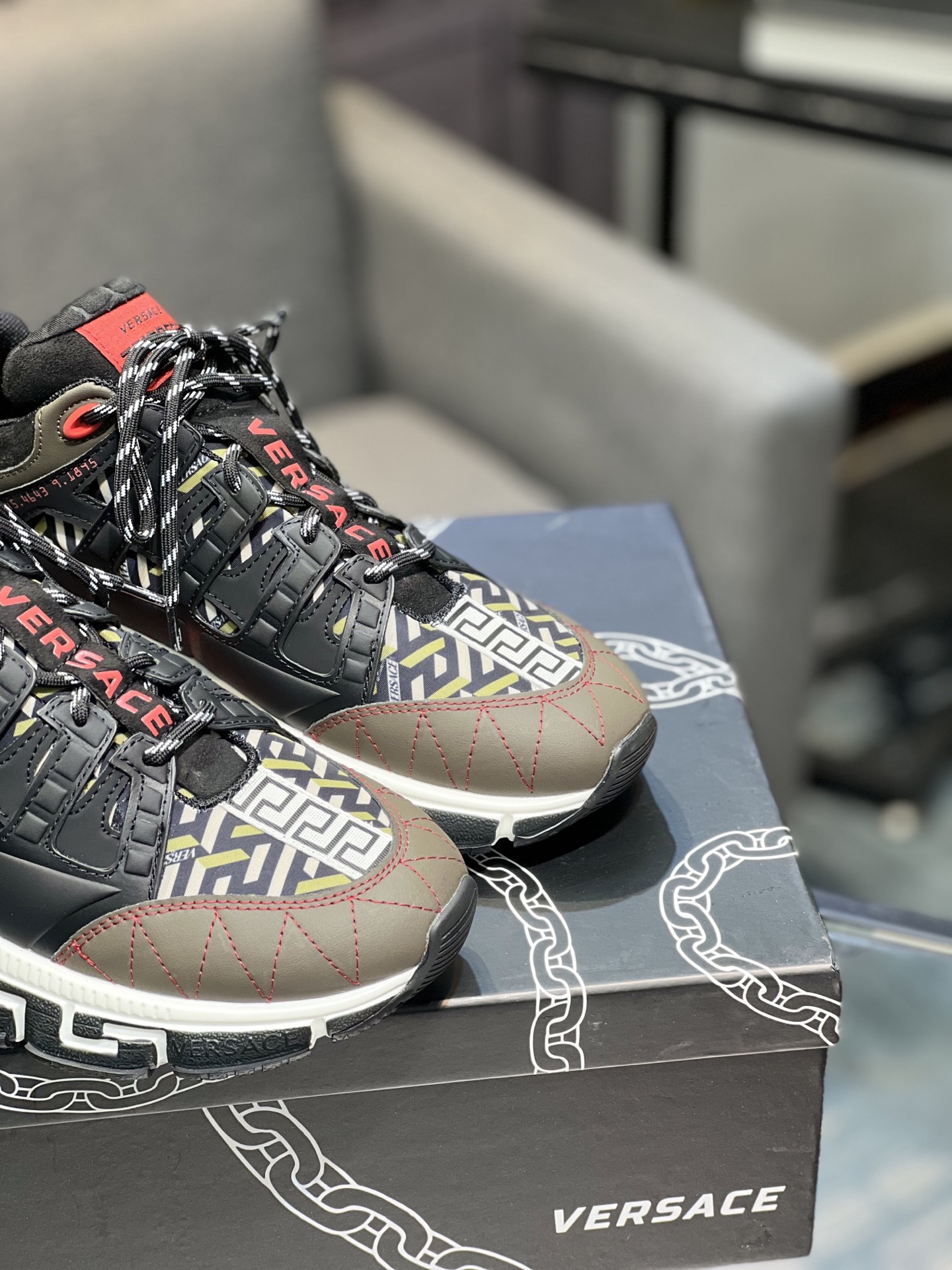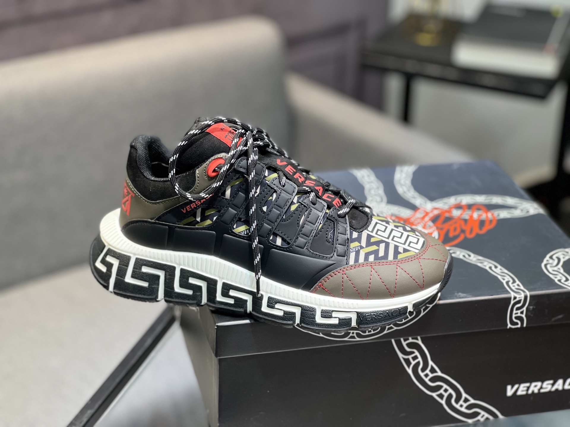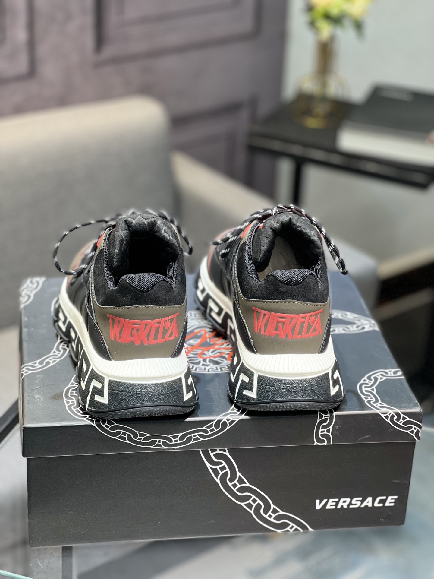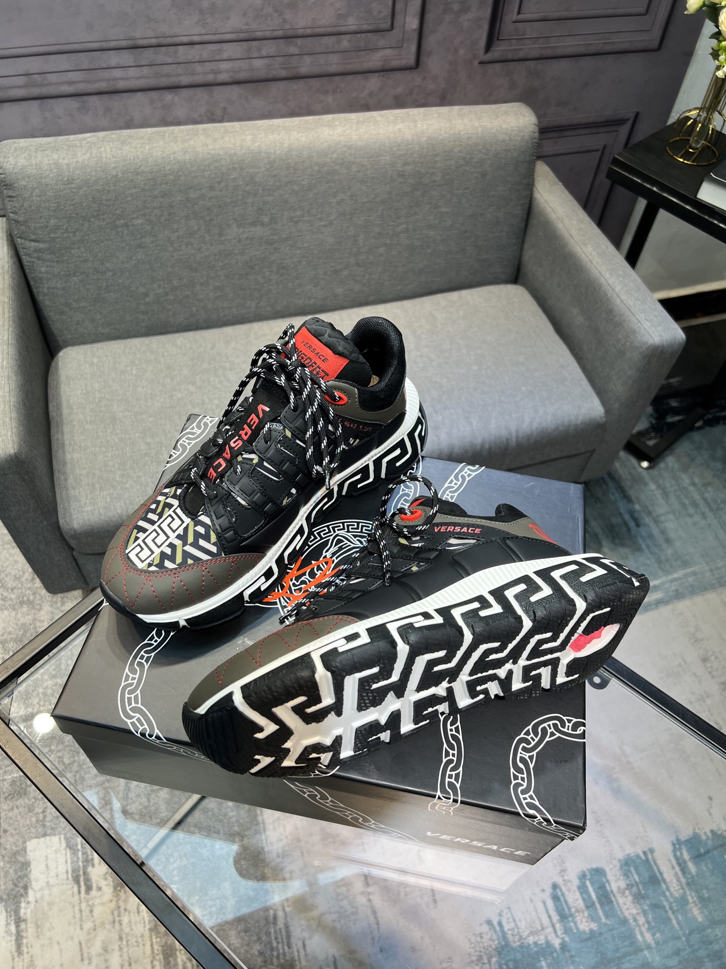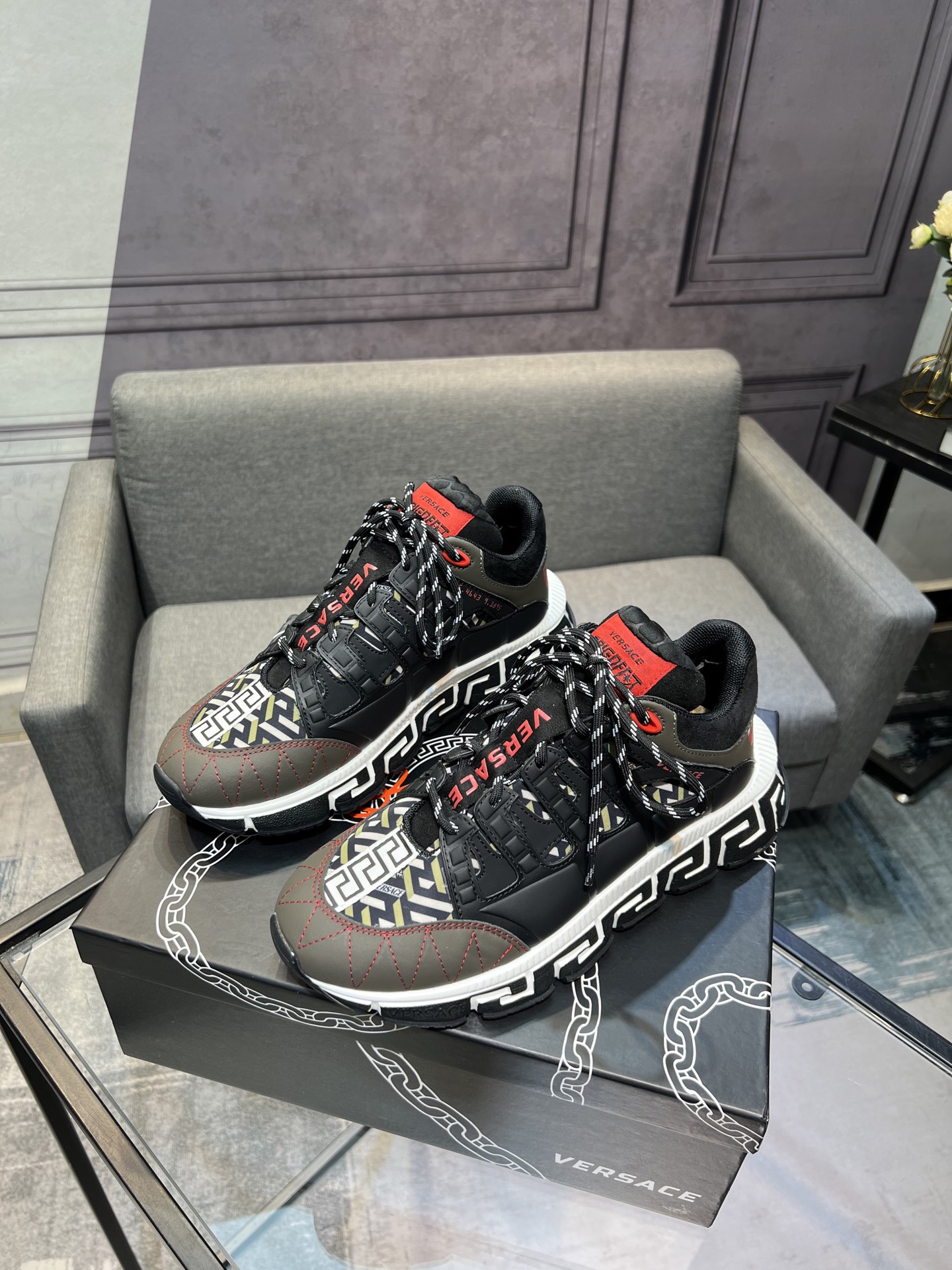 This shoes is AAAAA 1:1 quality (superb). Materials used are identical to the original ones. Versace trademark marks are indistinguishable to the authentic. Photos take by actual shoes, what you receive will be 100% same with our photos.