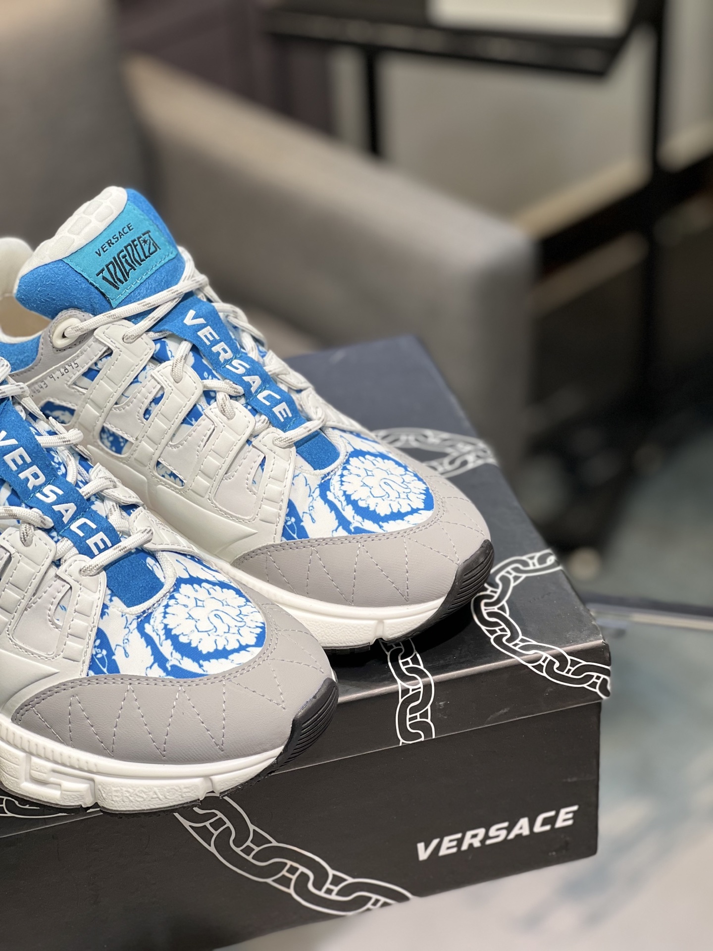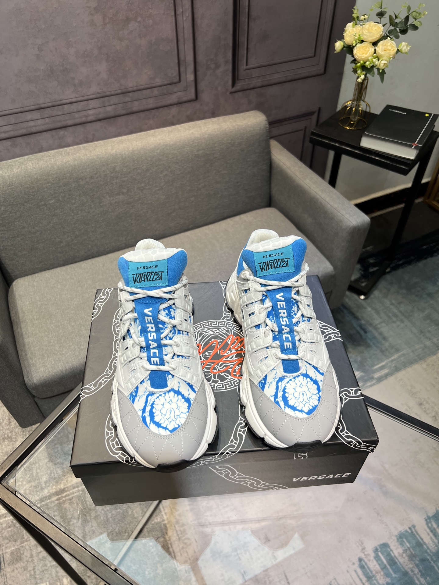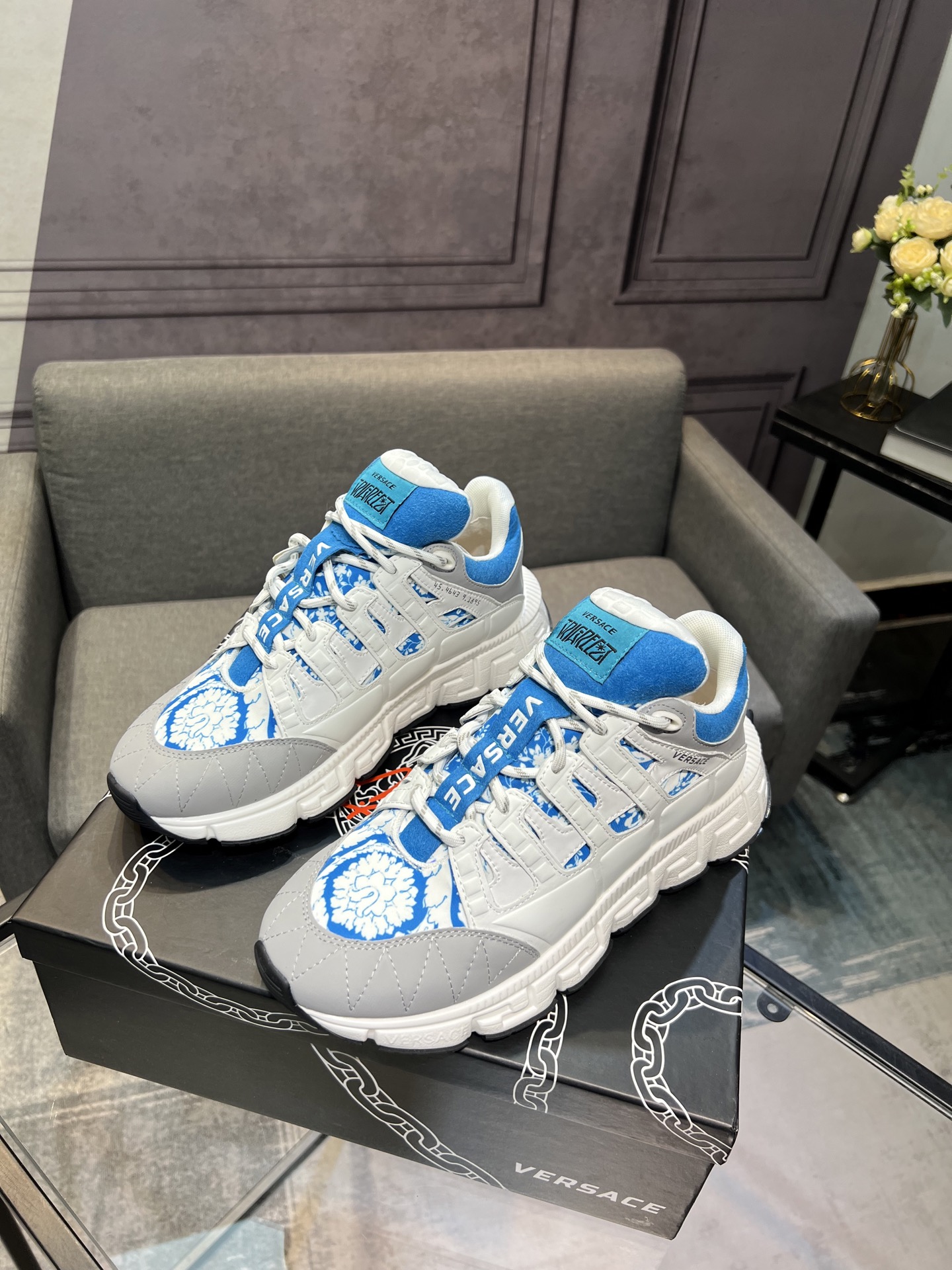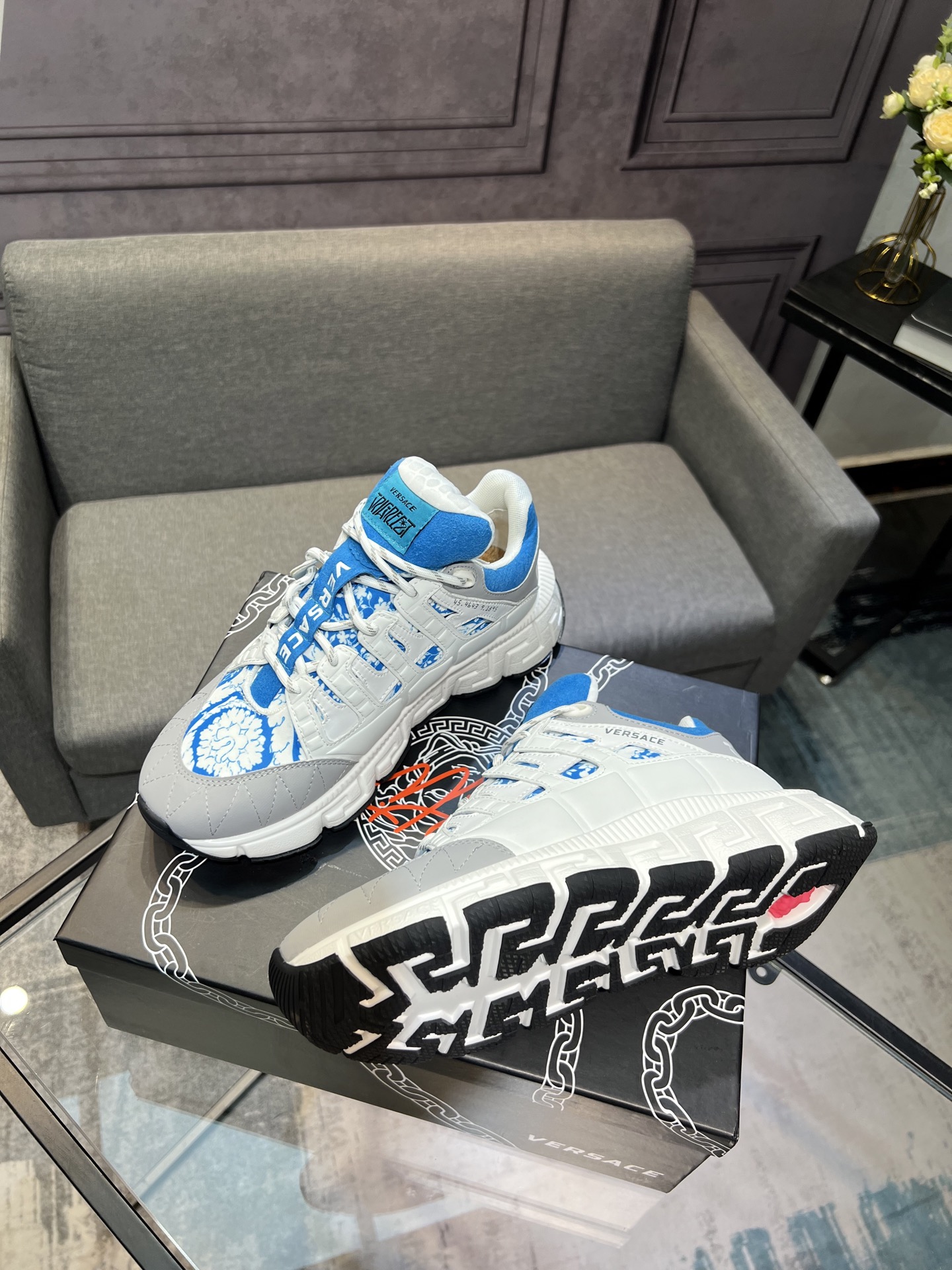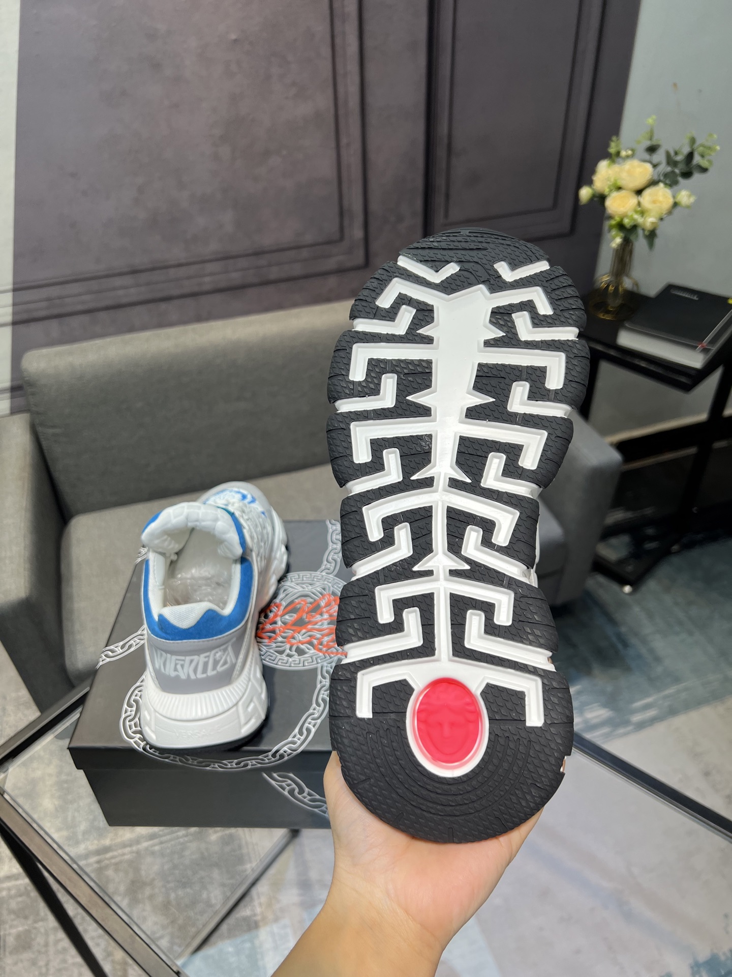 This shoes is AAAAA 1:1 quality (superb). Materials used are identical to the original ones. Versace trademark marks are indistinguishable to the authentic. Photos take by actual shoes, what you receive will be 100% same with our photos.