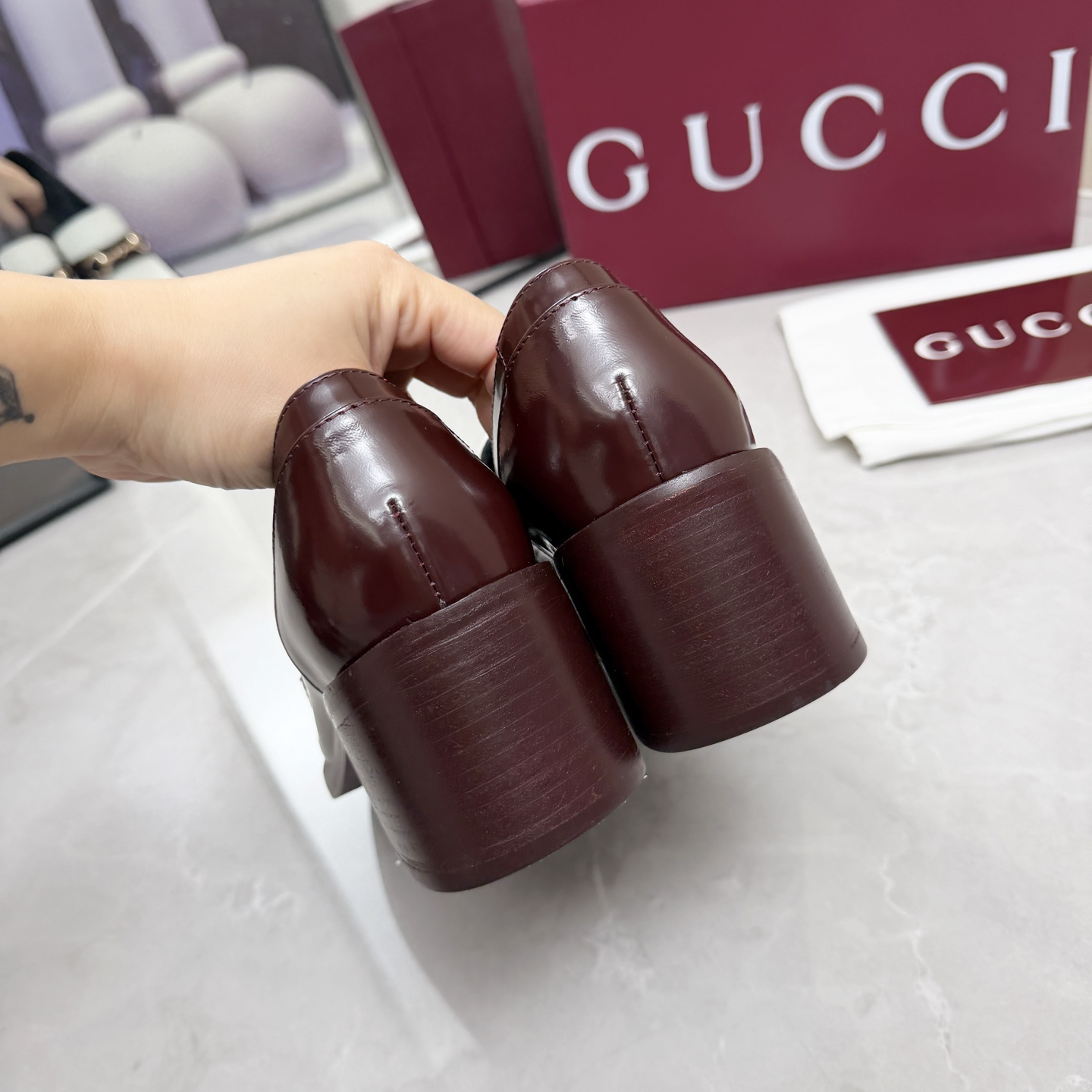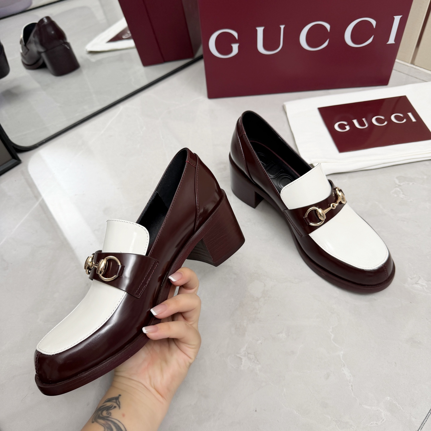 This shoes is AAAAA 1:1 quality (superb). Materials used are identical to the original ones. Gucci trademark marks are indistinguishable to the authentic. Photos take by actual shoes, what you receive will be 100% same with our photos.