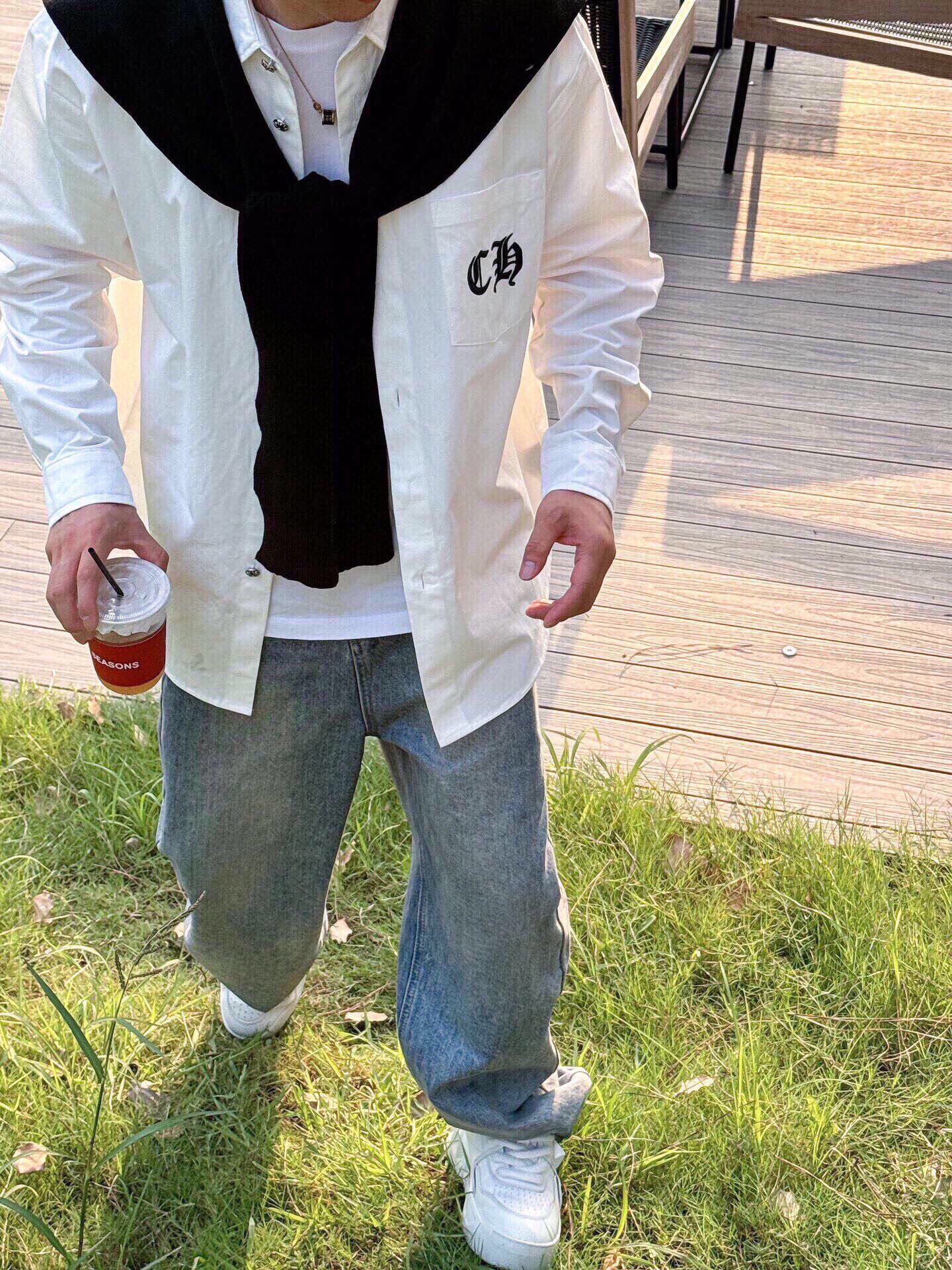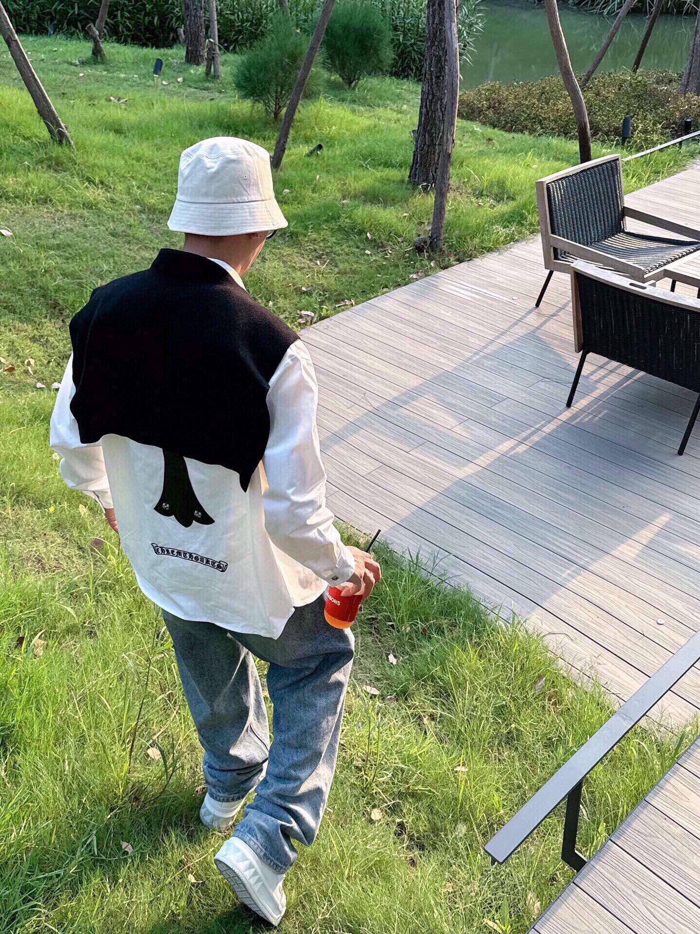 NO:4272048. The clothes is from Chrome Hearts designer.