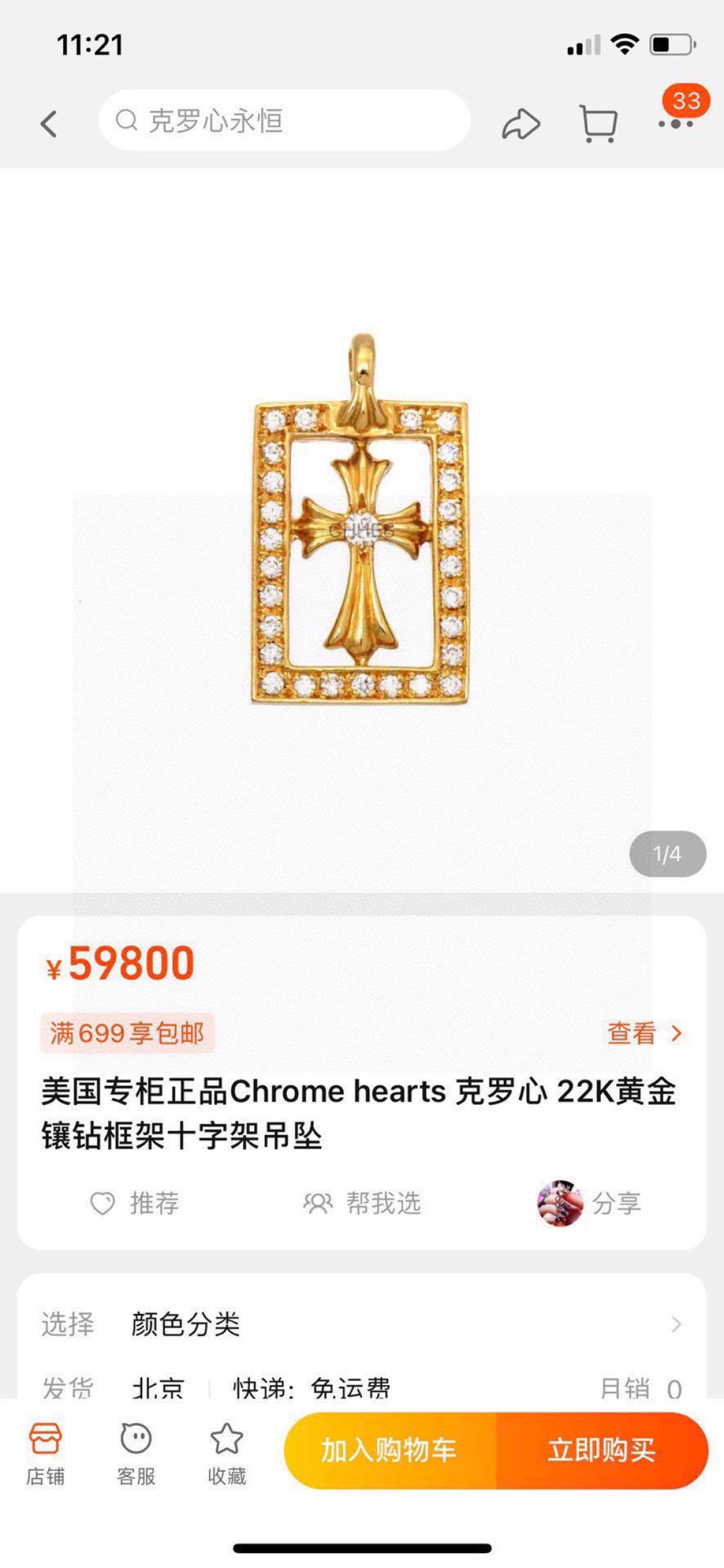 NO:4299920. The jewelry is from Chrome Hearts designer.