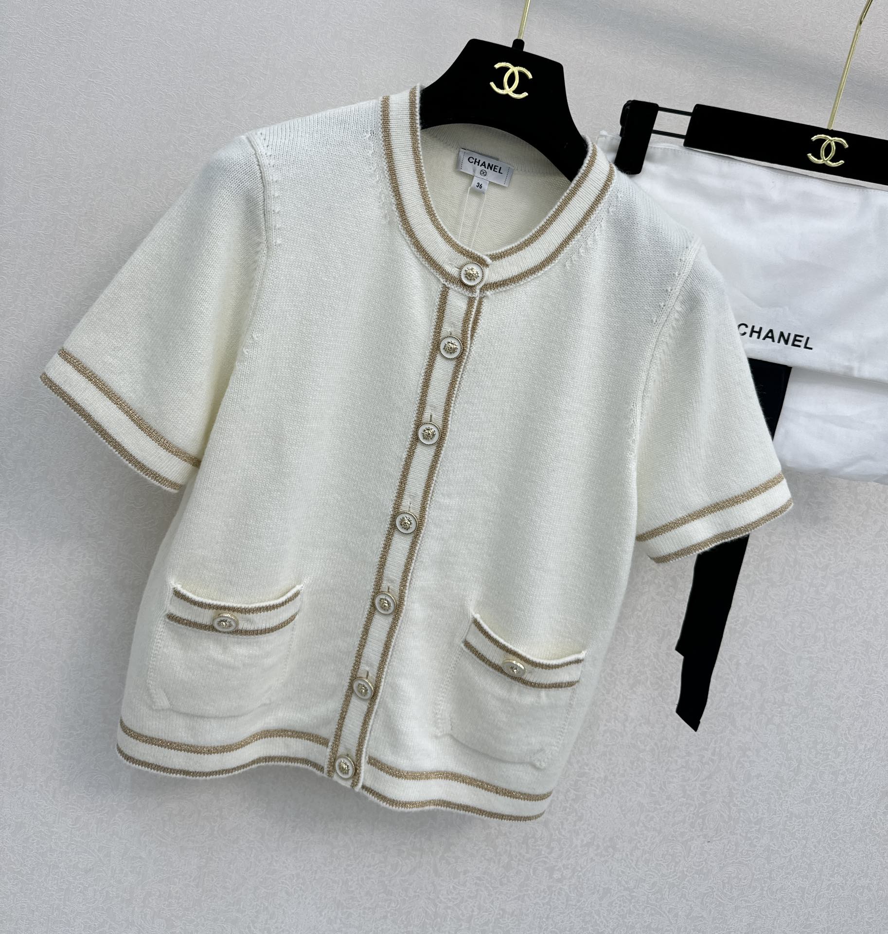 This clothes is AAAAA 1:1 quality (superb). Materials used are identical to the original ones. Chanel trademark marks are indistinguishable to the authentic. Photos take by actual clothes, what you receive will be 100% same with our photos.