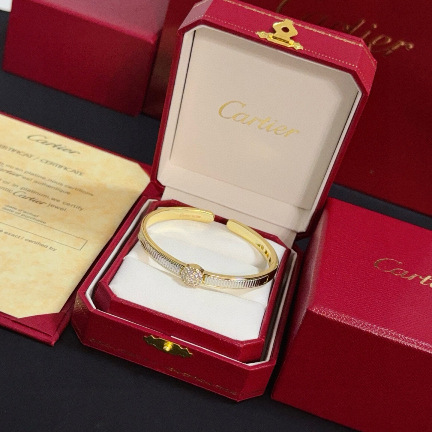 This jewelry is AAAAA 1:1 quality (superb). Materials used are identical to the original ones. Cartier trademark marks are indistinguishable to the authentic. Photos take by actual jewelry, what you receive will be 100% same with our photos.