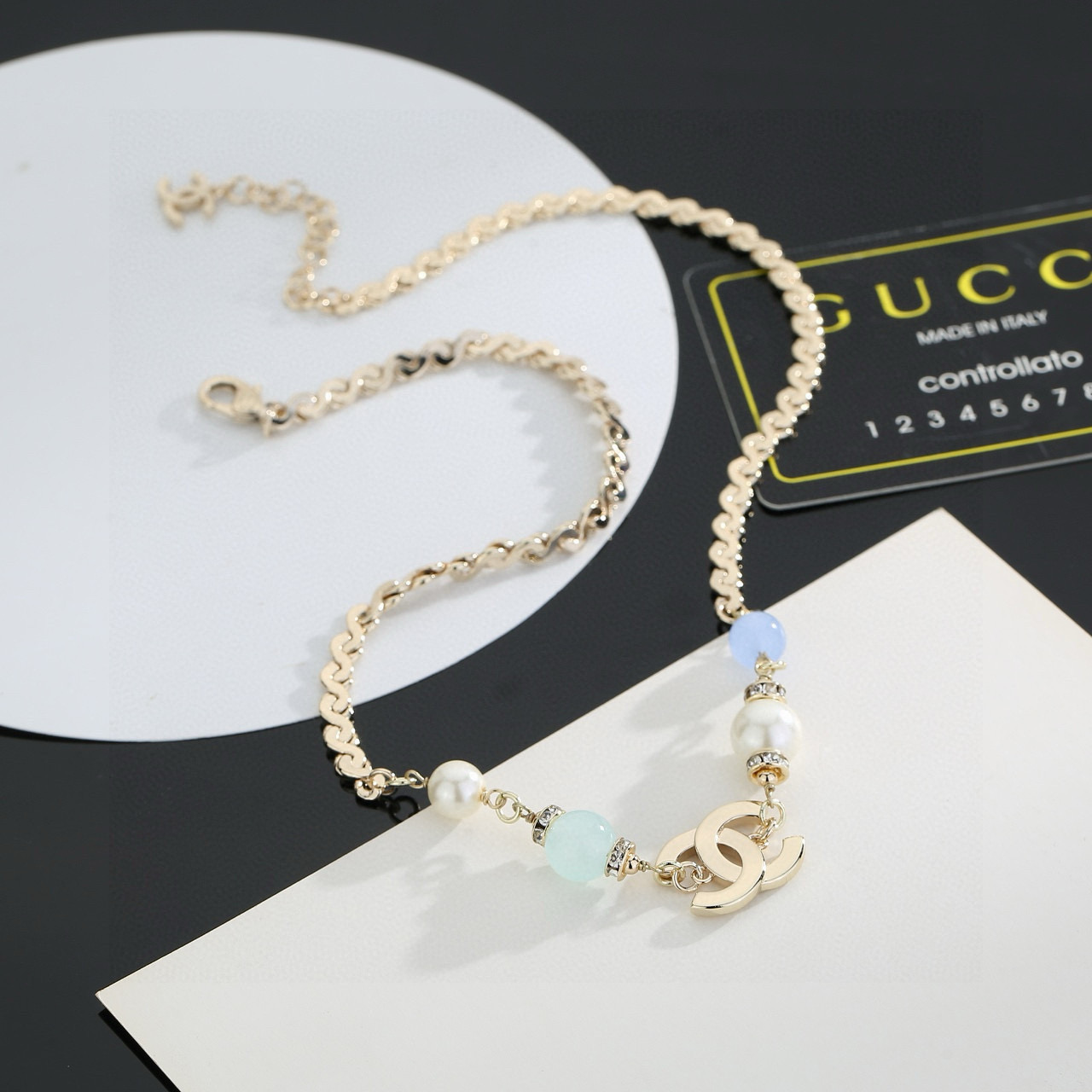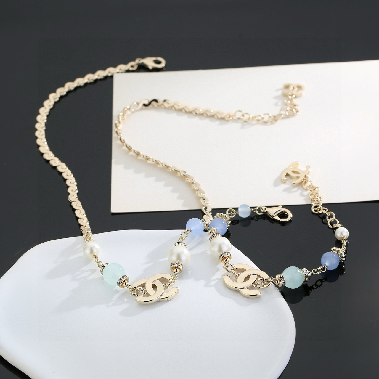 This jewelry is AAAAA 1:1 quality (superb). Materials used are identical to the original ones. Chanel trademark marks are indistinguishable to the authentic. Photos take by actual jewelry, what you receive will be 100% same with our photos.