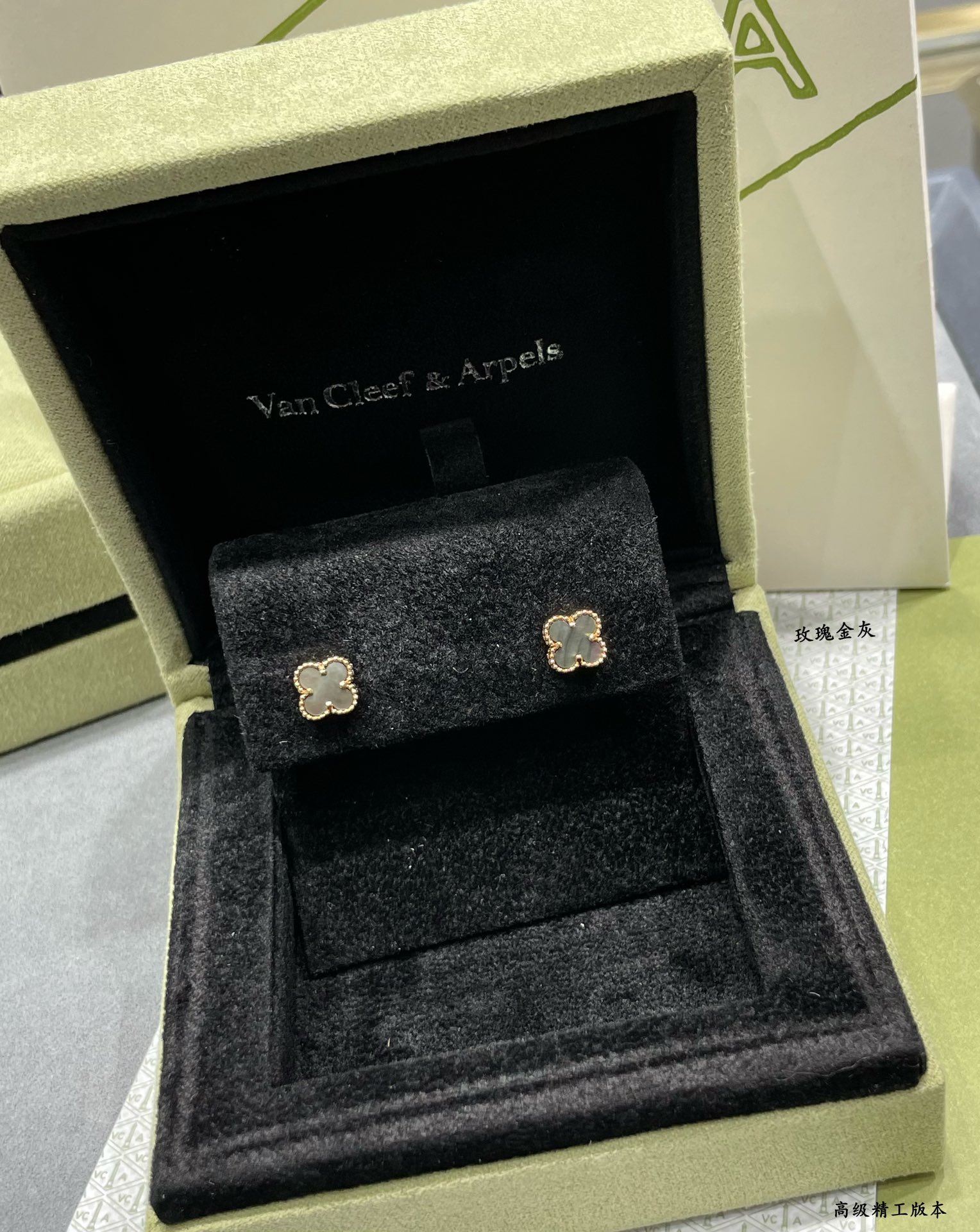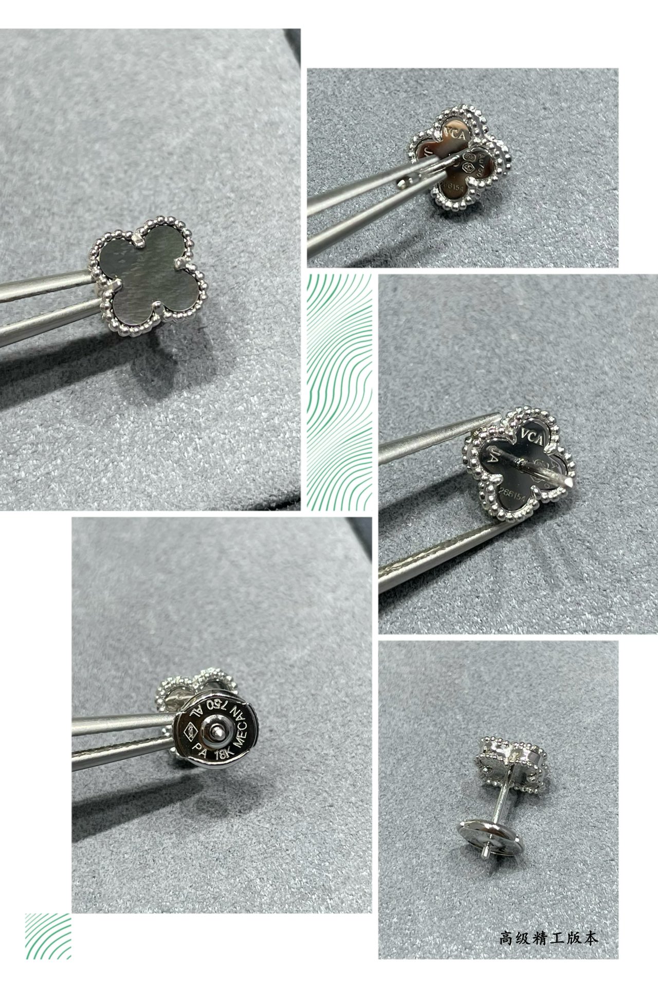 This jewelry is AAAAA 1:1 quality (superb). Materials used are identical to the original ones. Van Cleef & Arpels trademark marks are indistinguishable to the authentic. Photos take by actual jewelry, what you receive will be 100% same with our photos.