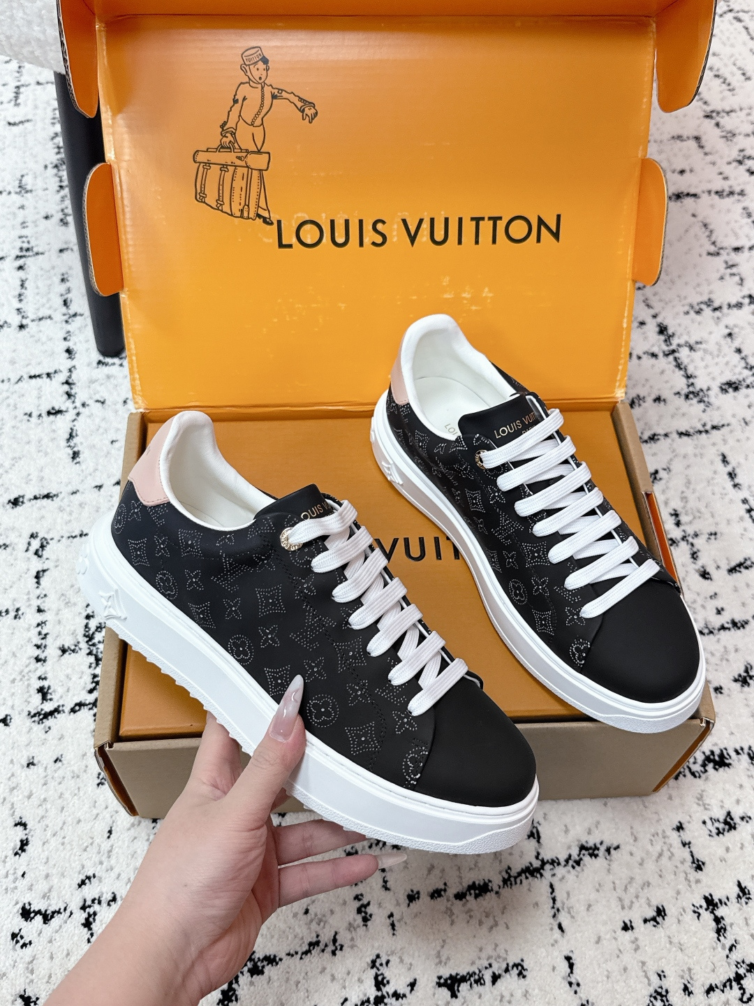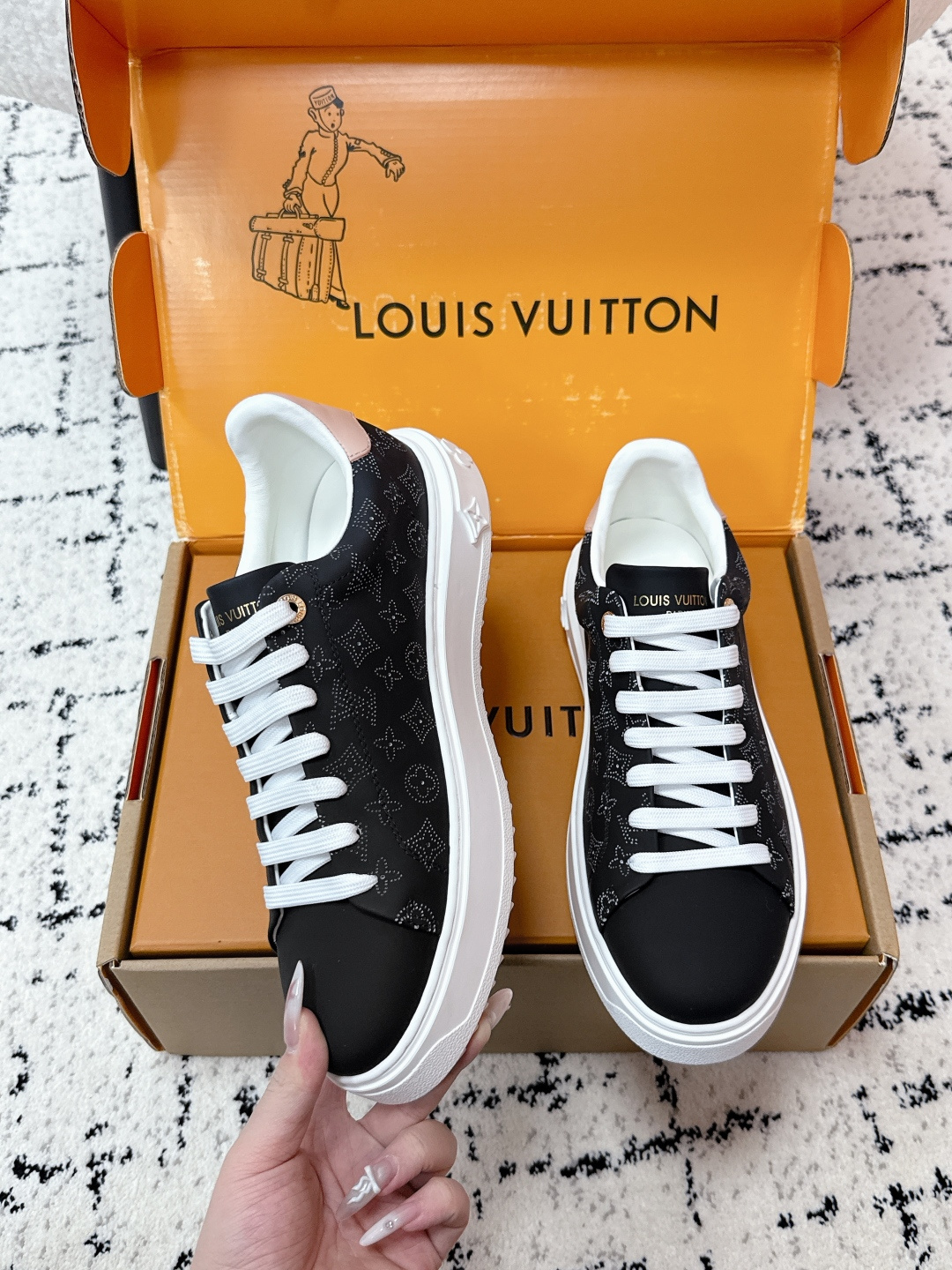 This shoes is AAAAA 1:1 quality (superb). Materials used are identical to the original ones. Louis Vuitton trademark marks are indistinguishable to the authentic. Photos take by actual shoes, what you receive will be 100% same with our photos.