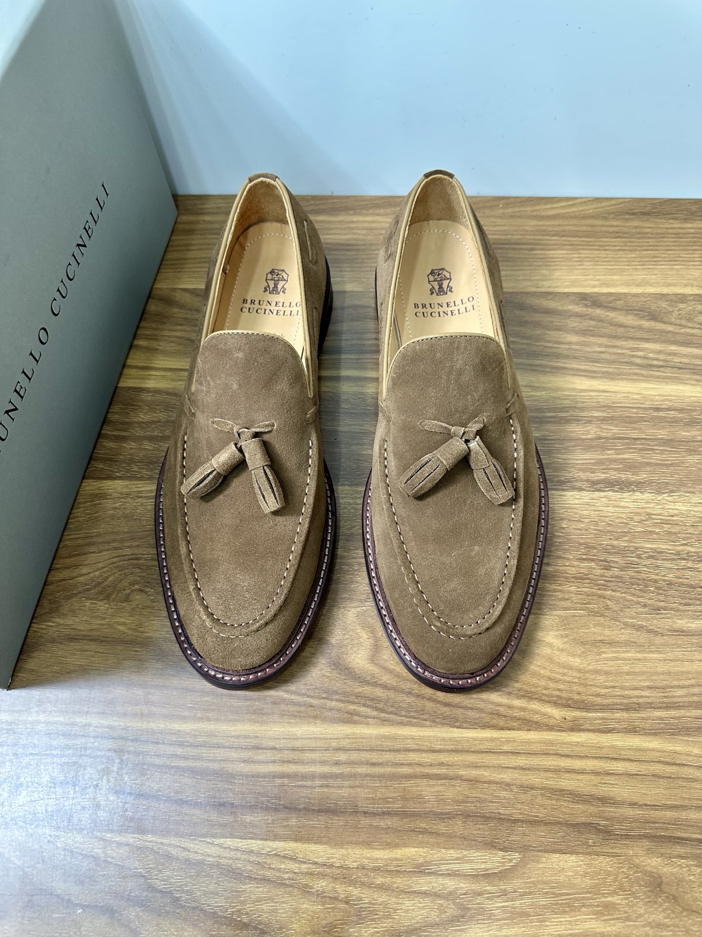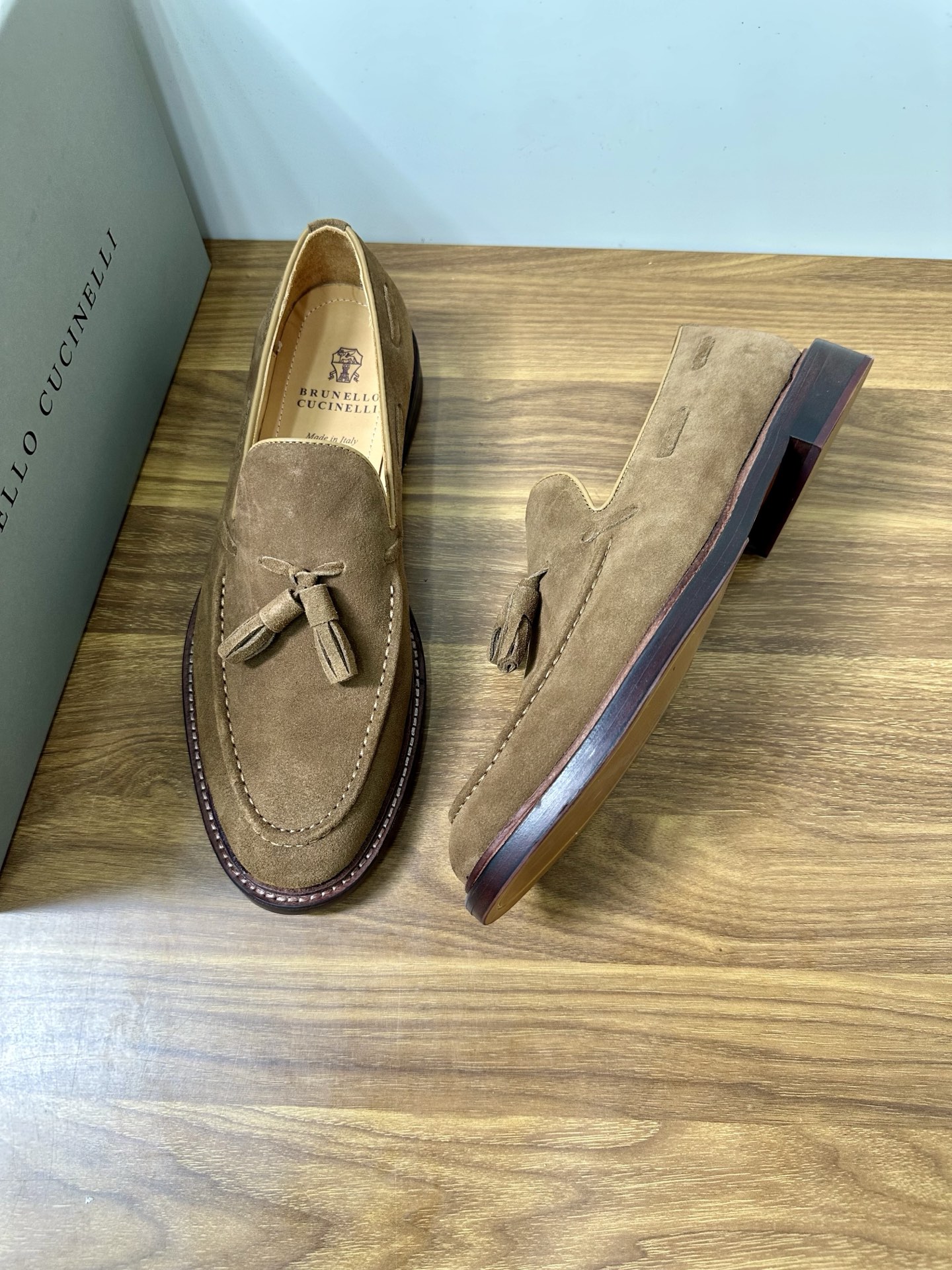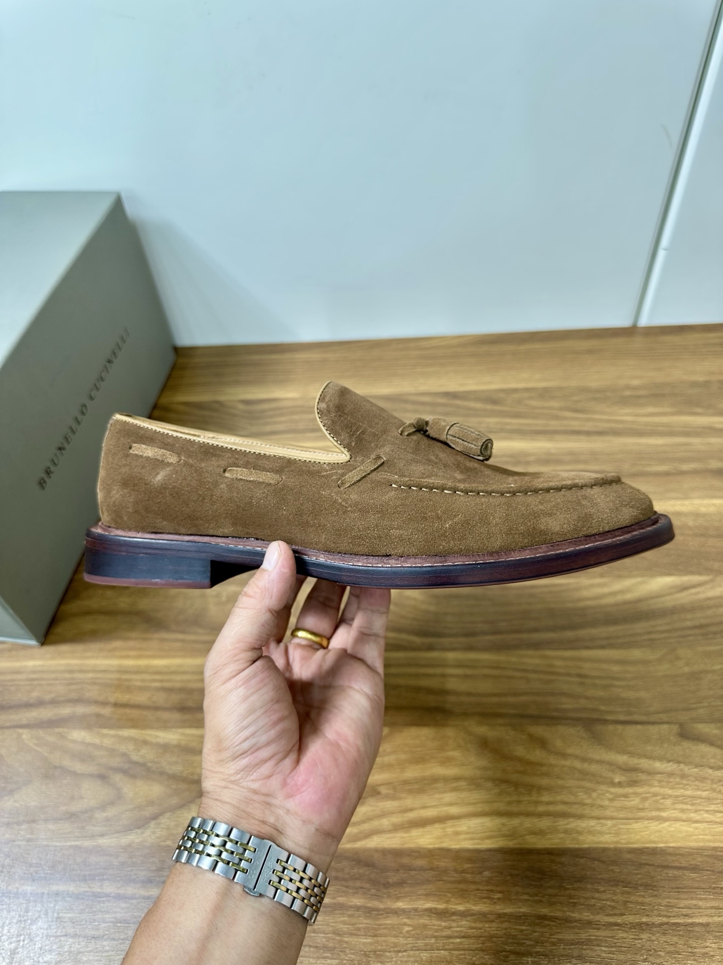 This shoes is AAAAA 1:1 quality (superb). Materials used are identical to the original ones. Brunello Cucinelli trademark marks are indistinguishable to the authentic. Photos take by actual shoes, what you receive will be 100% same with our photos.