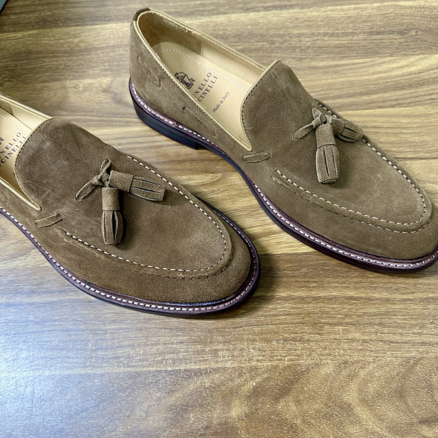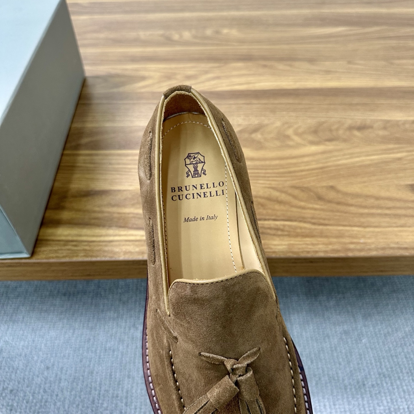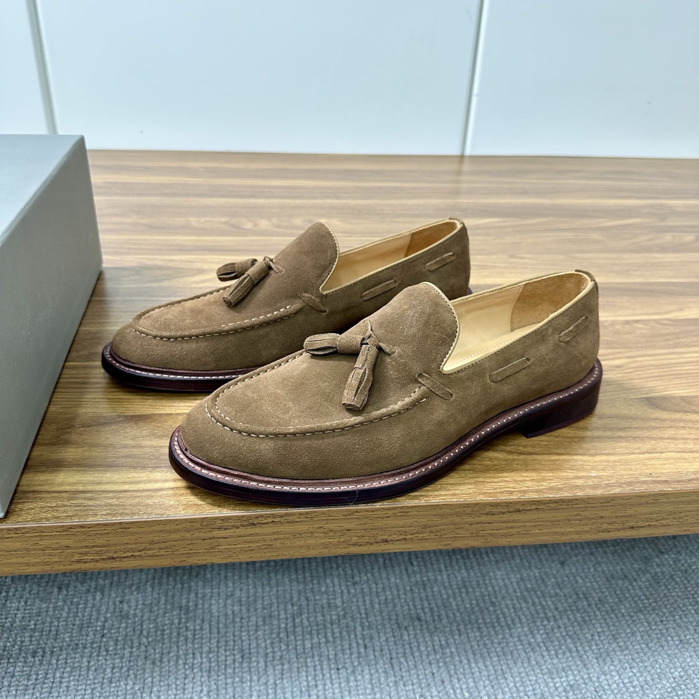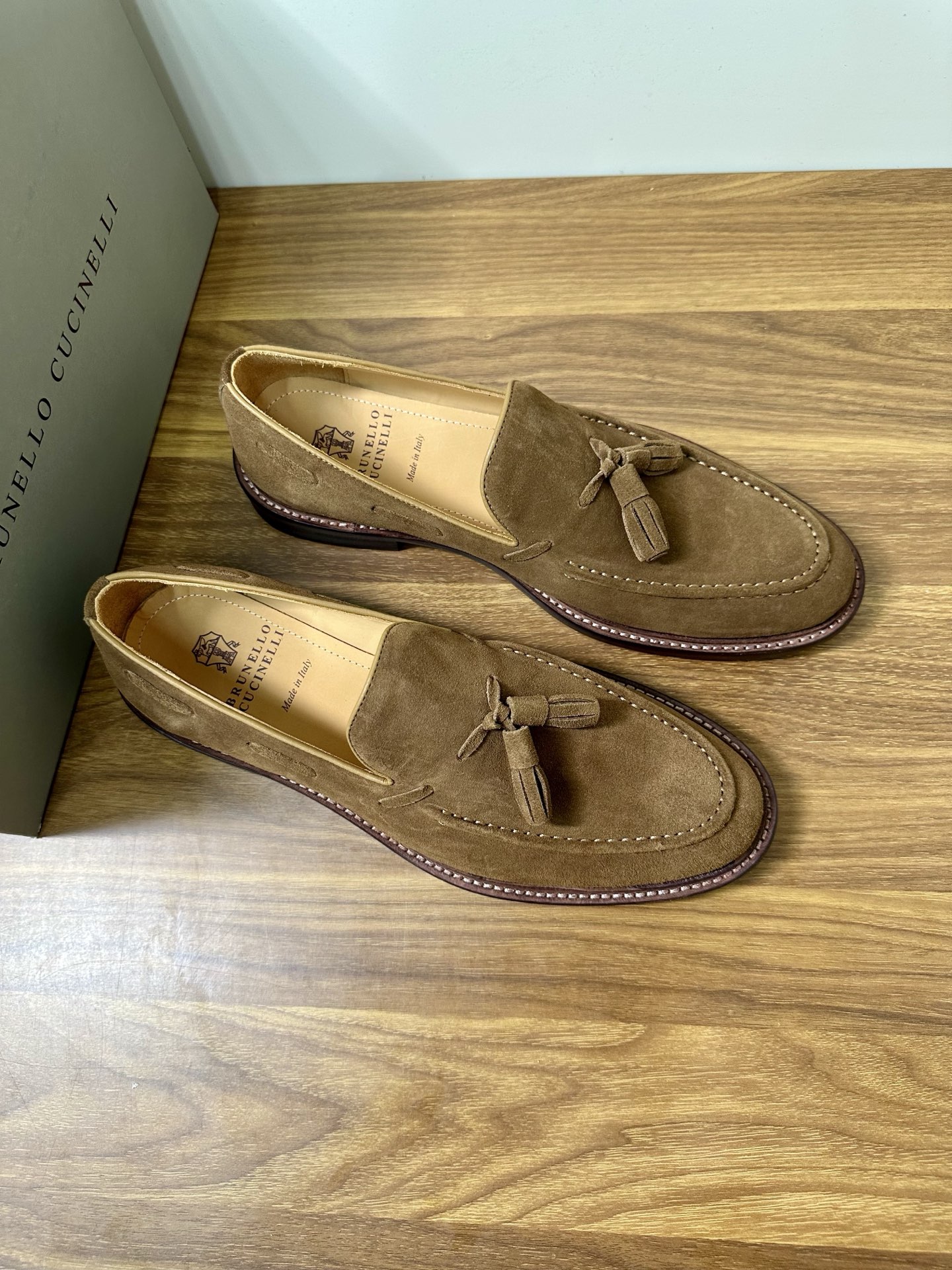 This shoes is AAAAA 1:1 quality (superb). Materials used are identical to the original ones. Brunello Cucinelli trademark marks are indistinguishable to the authentic. Photos take by actual shoes, what you receive will be 100% same with our photos.