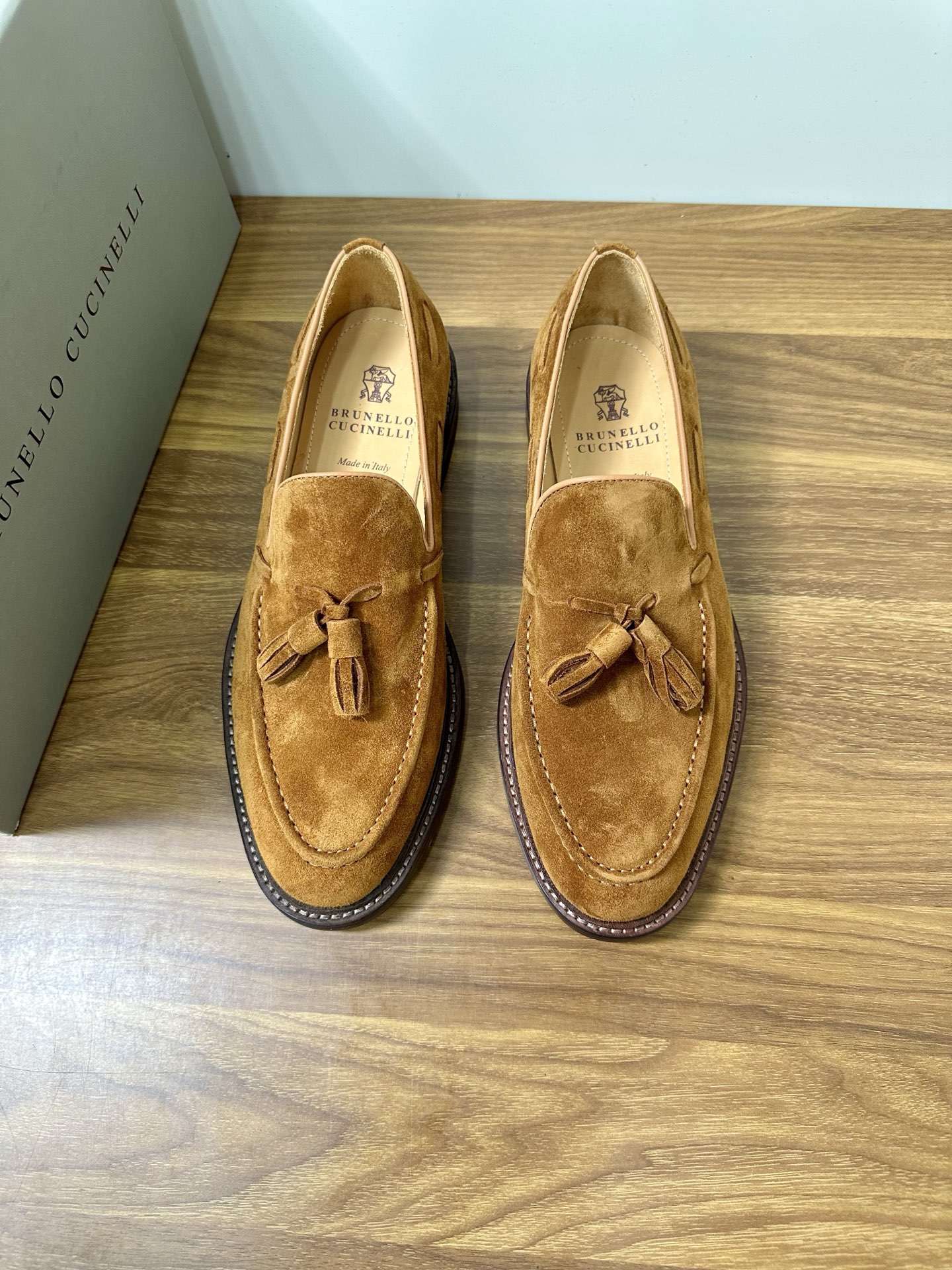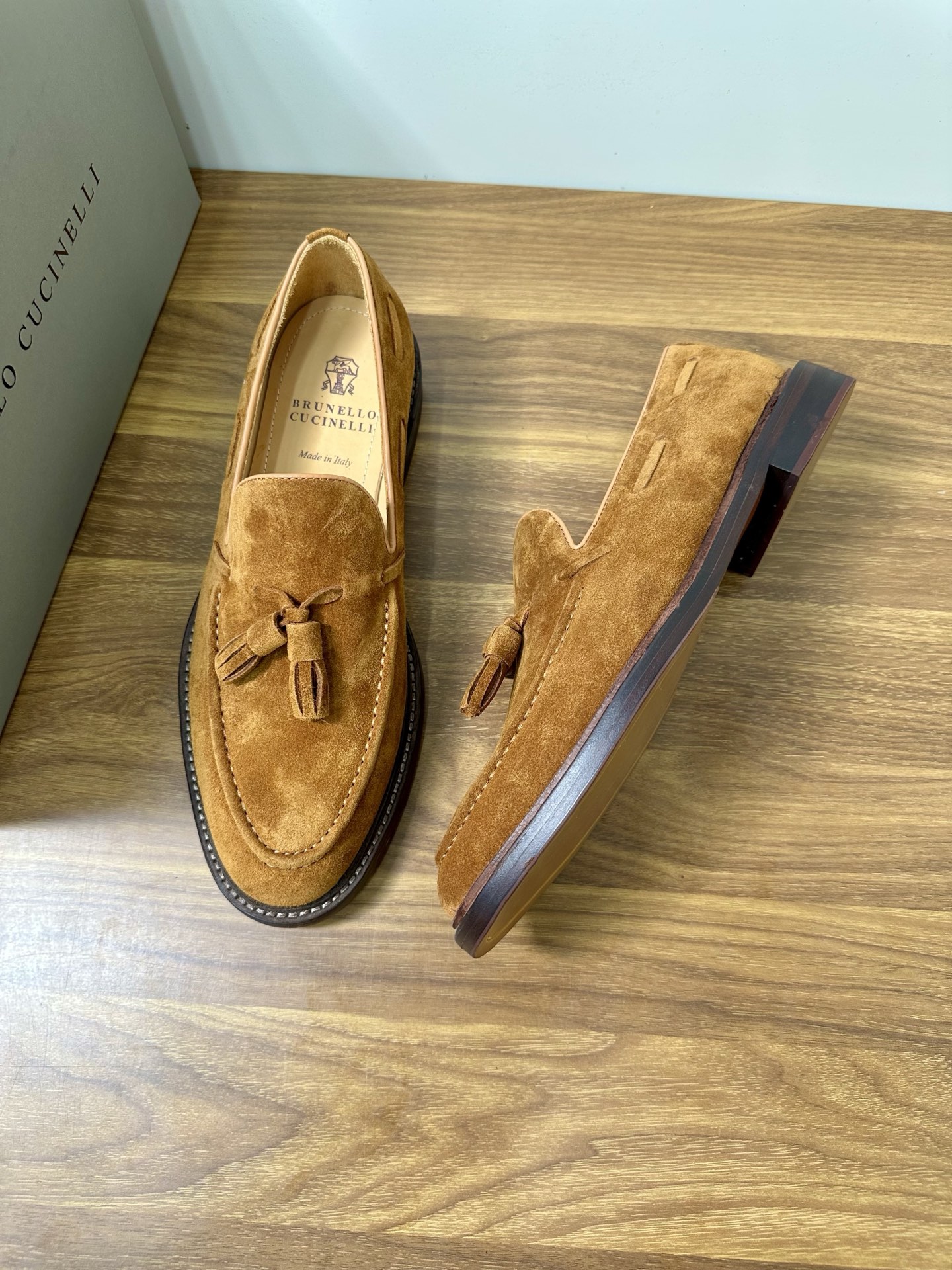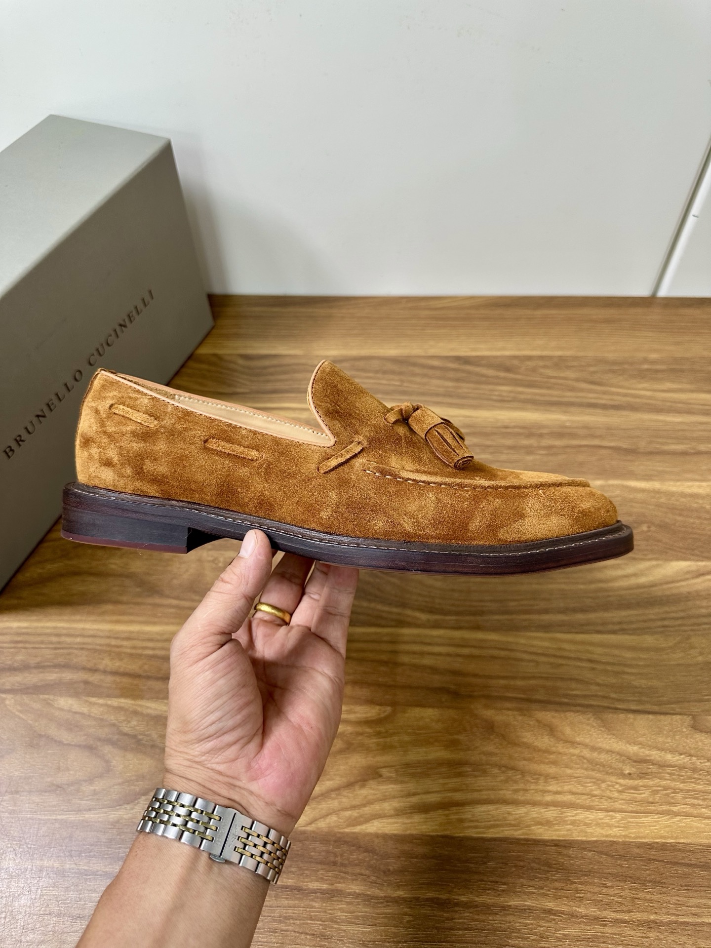 This shoes is AAAAA 1:1 quality (superb). Materials used are identical to the original ones. Brunello Cucinelli trademark marks are indistinguishable to the authentic. Photos take by actual shoes, what you receive will be 100% same with our photos.