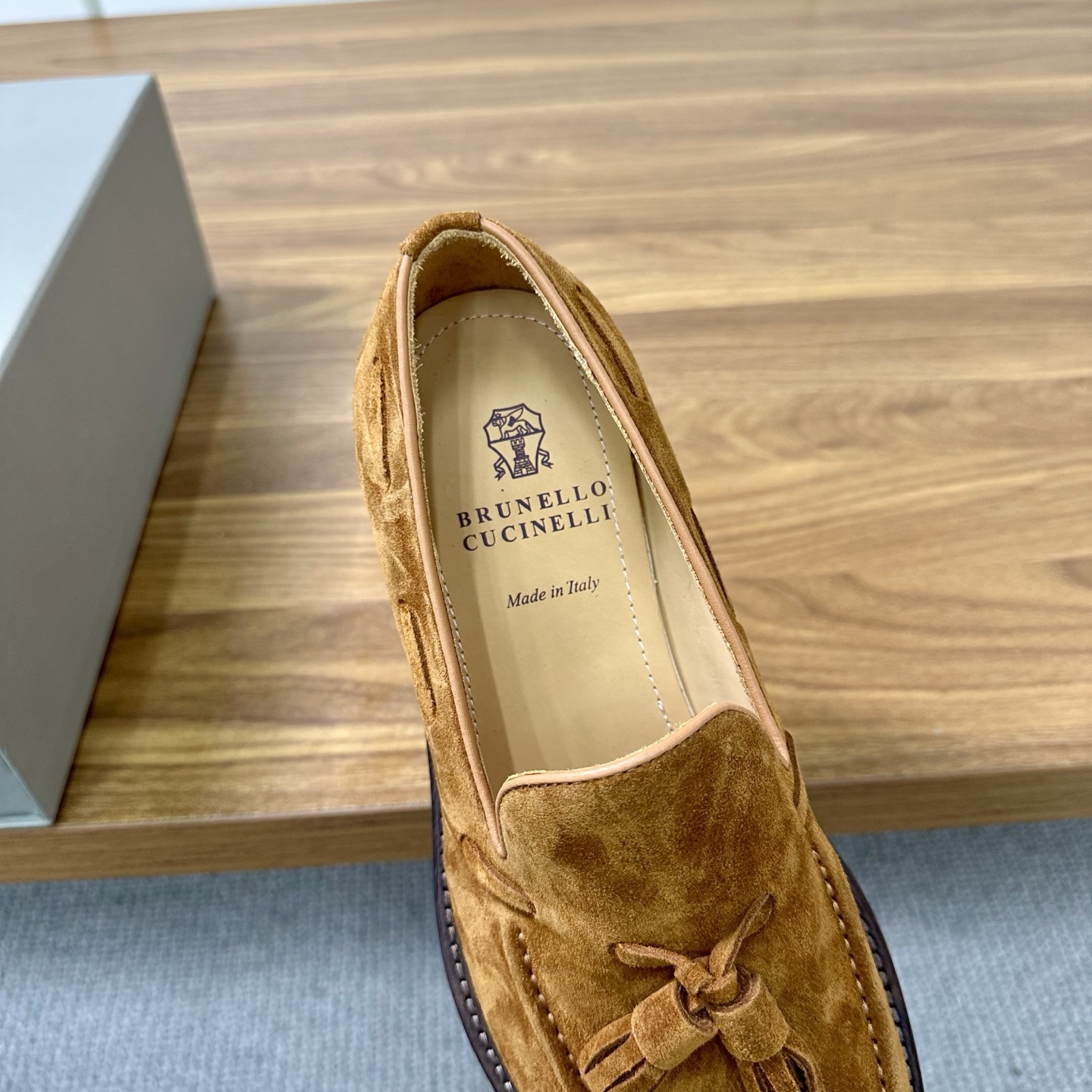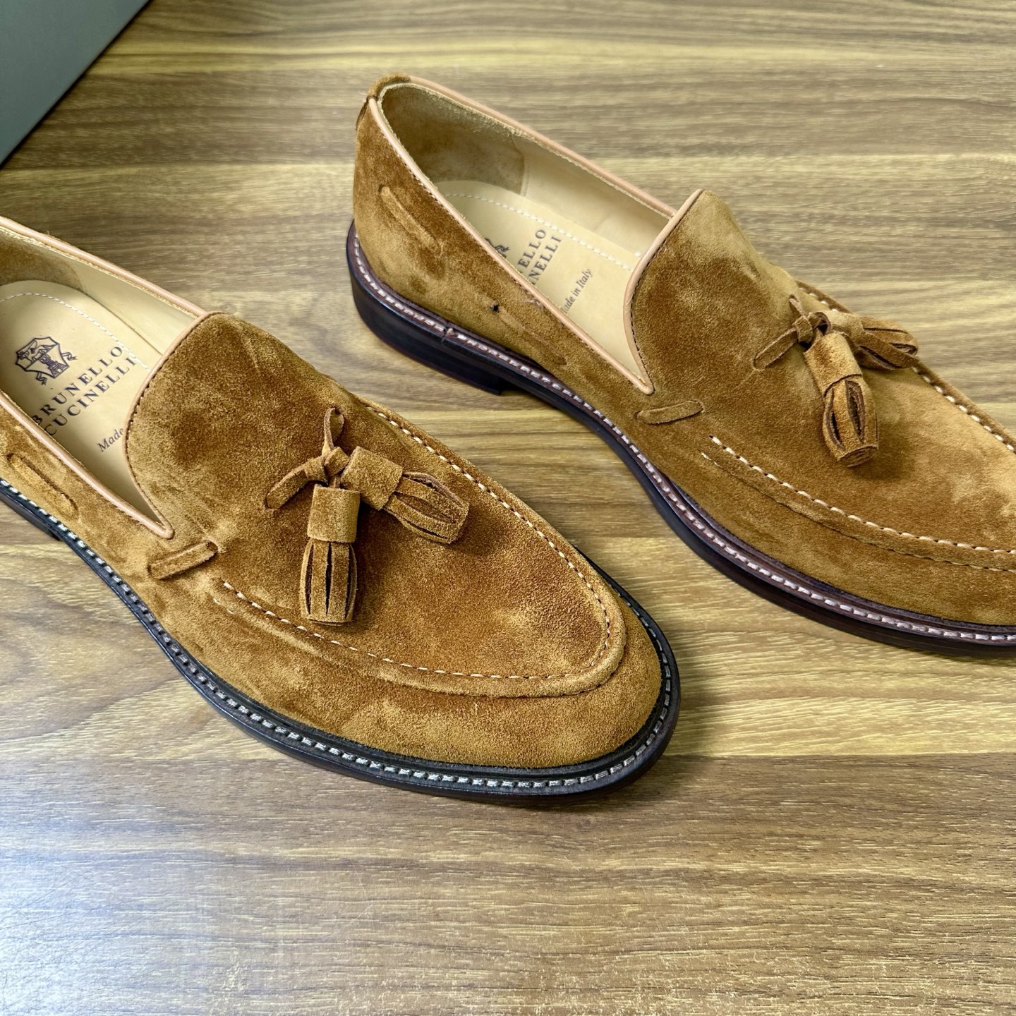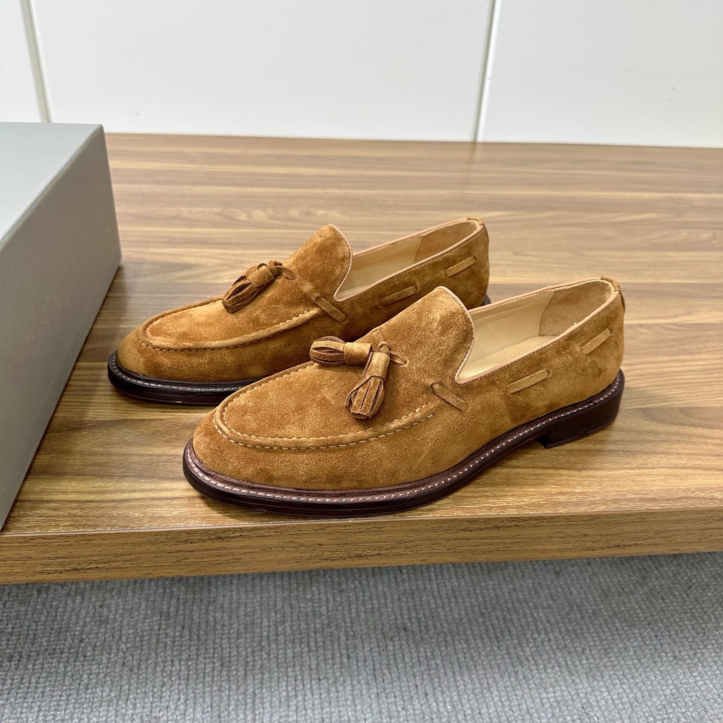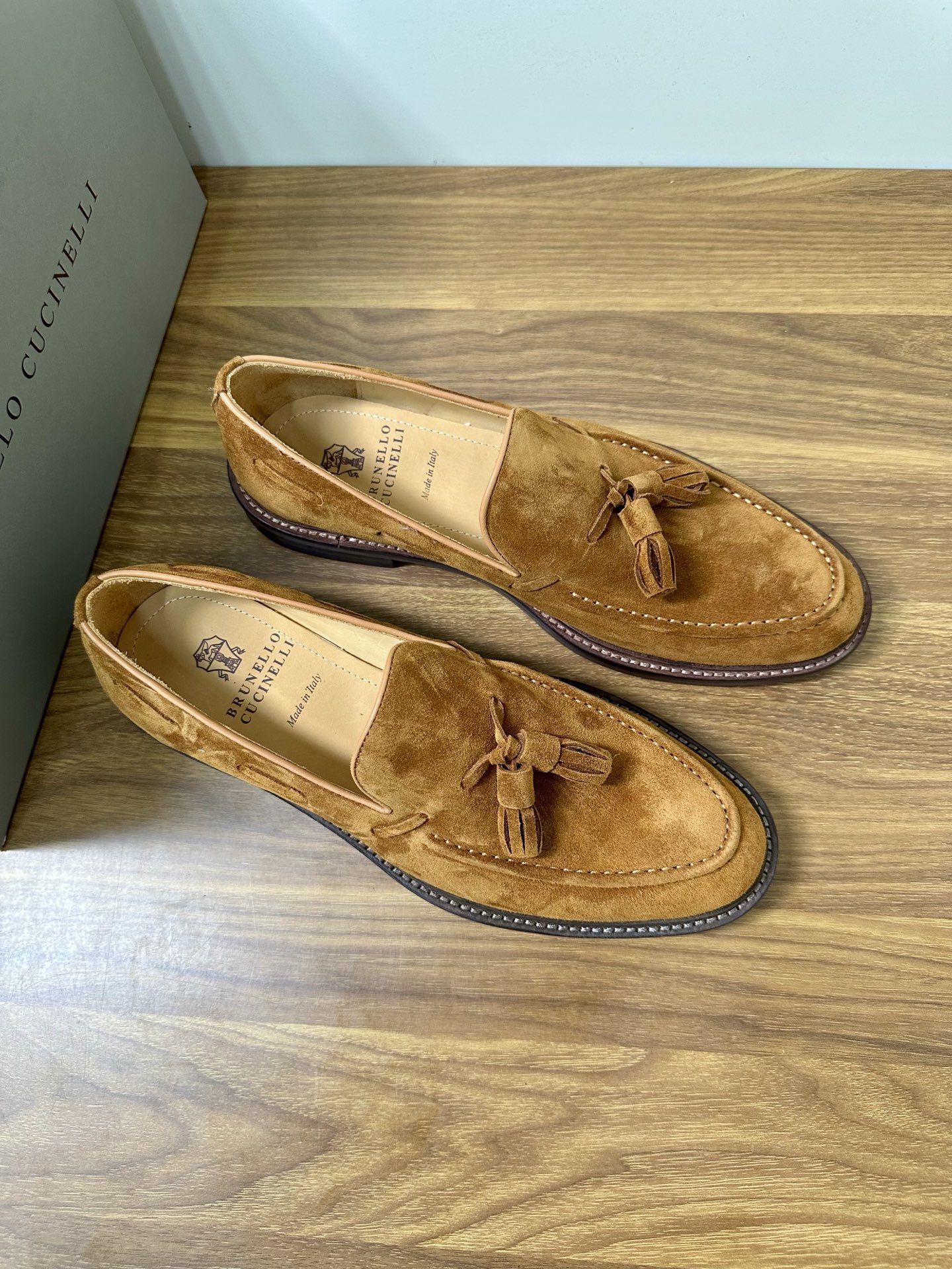 This shoes is AAAAA 1:1 quality (superb). Materials used are identical to the original ones. Brunello Cucinelli trademark marks are indistinguishable to the authentic. Photos take by actual shoes, what you receive will be 100% same with our photos.