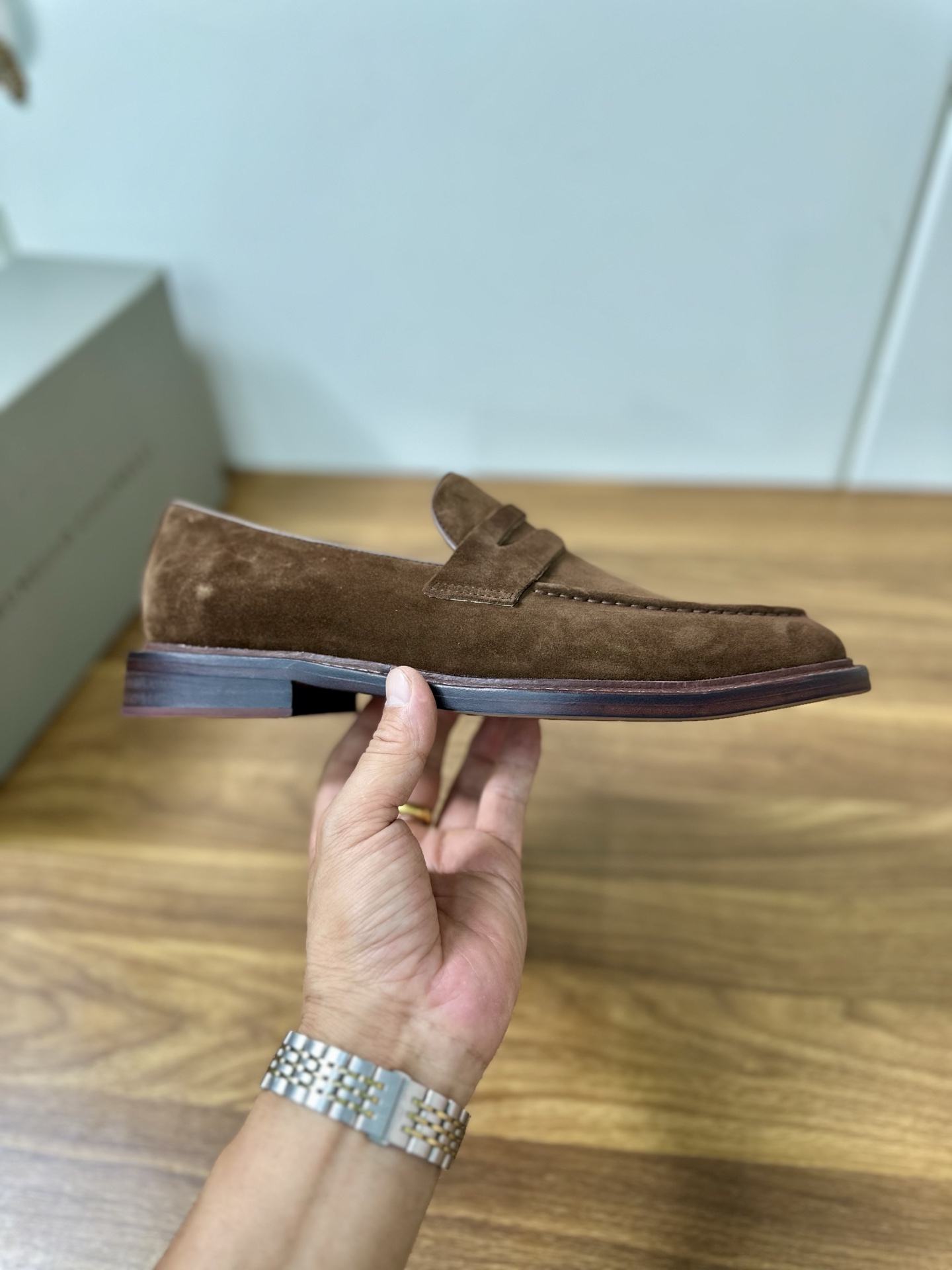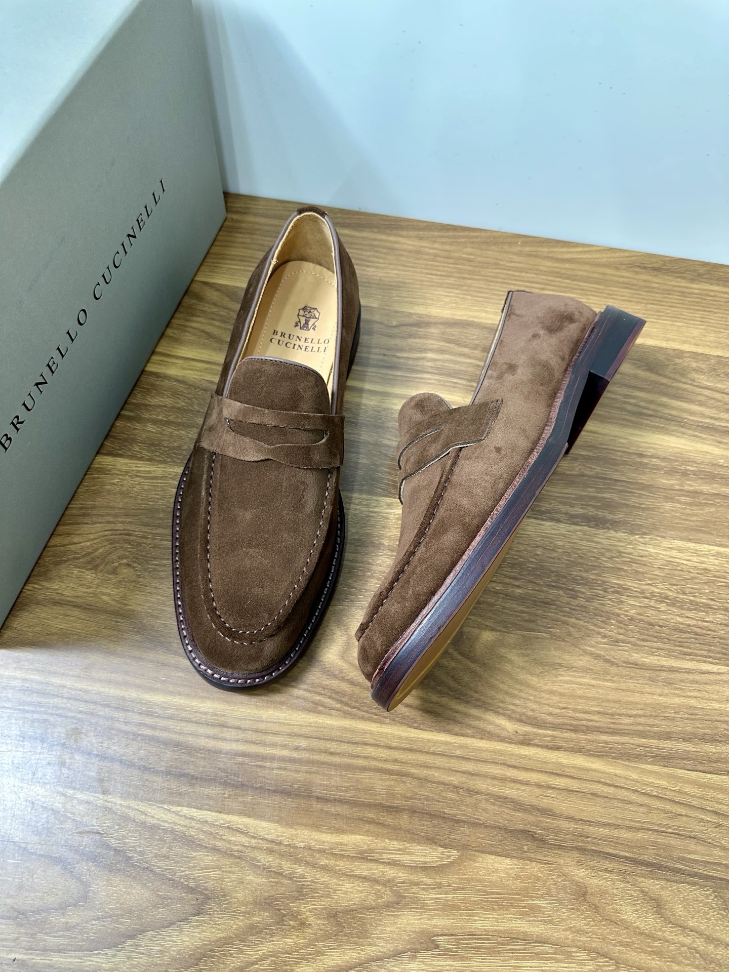 This shoes is AAAAA 1:1 quality (superb). Materials used are identical to the original ones. Brunello Cucinelli trademark marks are indistinguishable to the authentic. Photos take by actual shoes, what you receive will be 100% same with our photos.