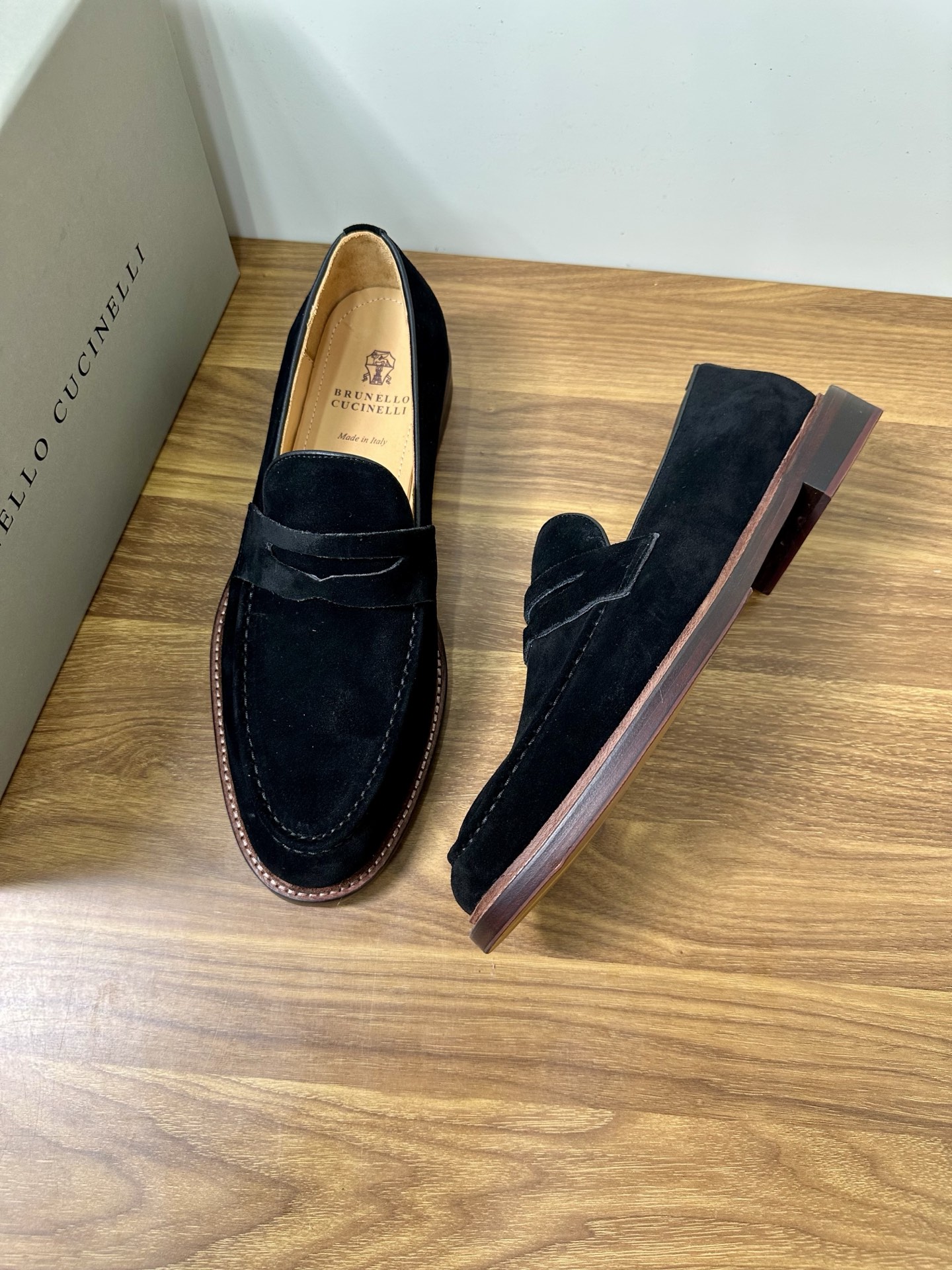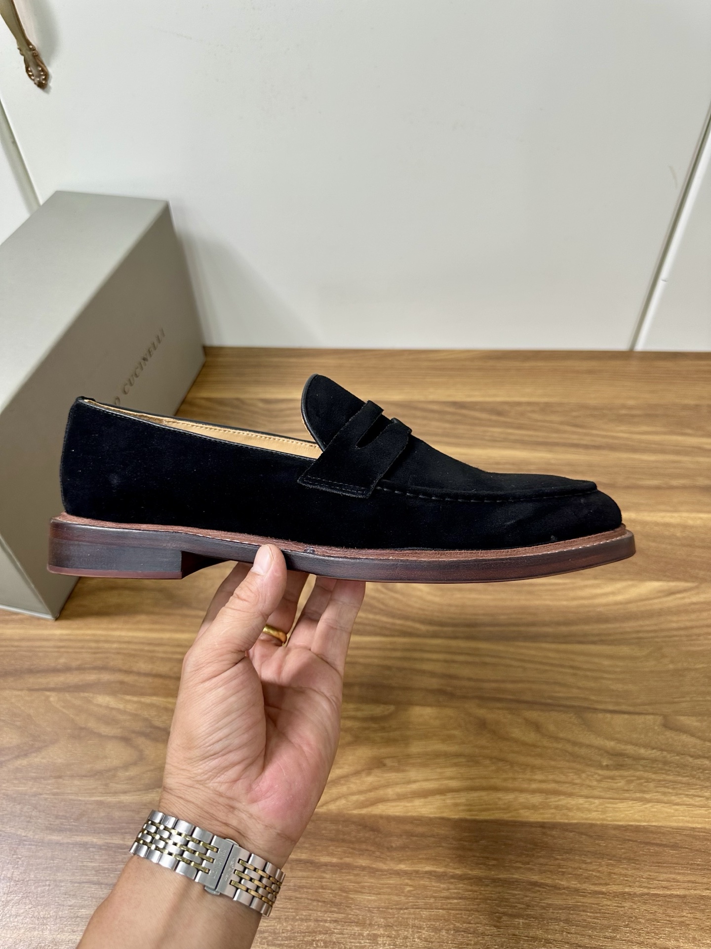 This shoes is AAAAA 1:1 quality (superb). Materials used are identical to the original ones. Brunello Cucinelli trademark marks are indistinguishable to the authentic. Photos take by actual shoes, what you receive will be 100% same with our photos.