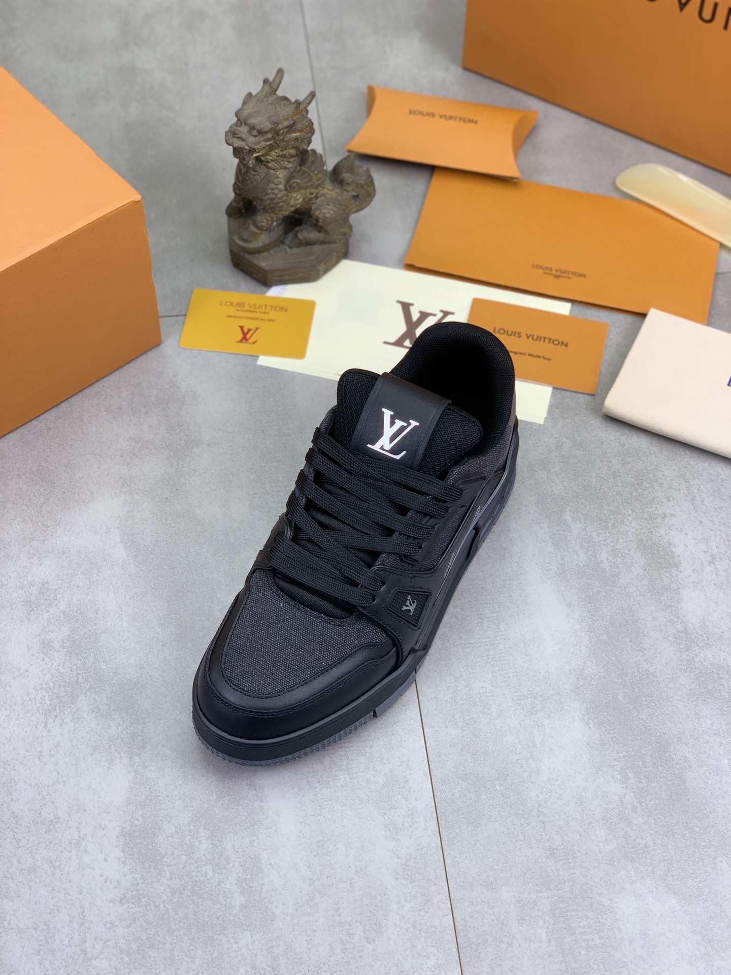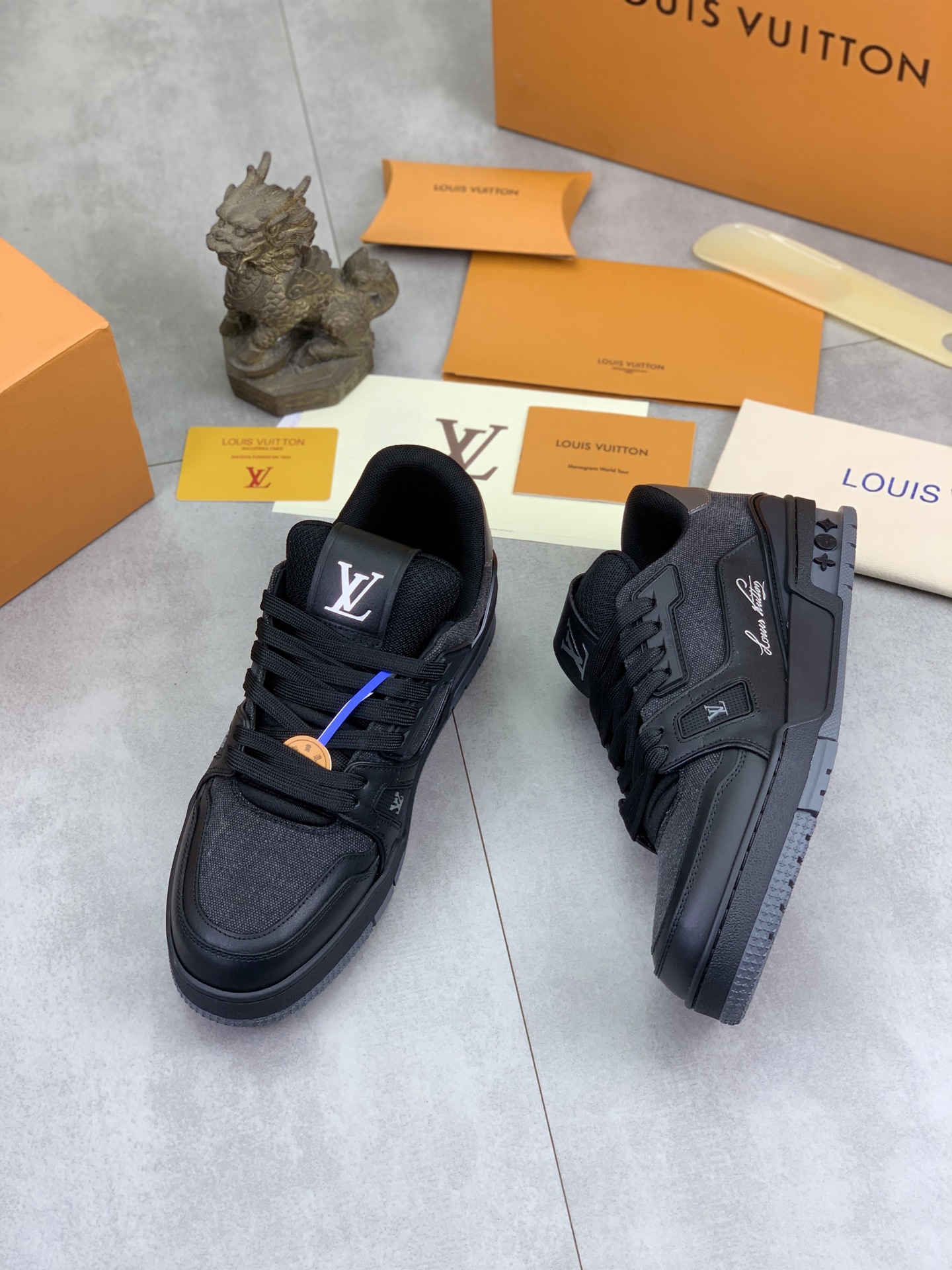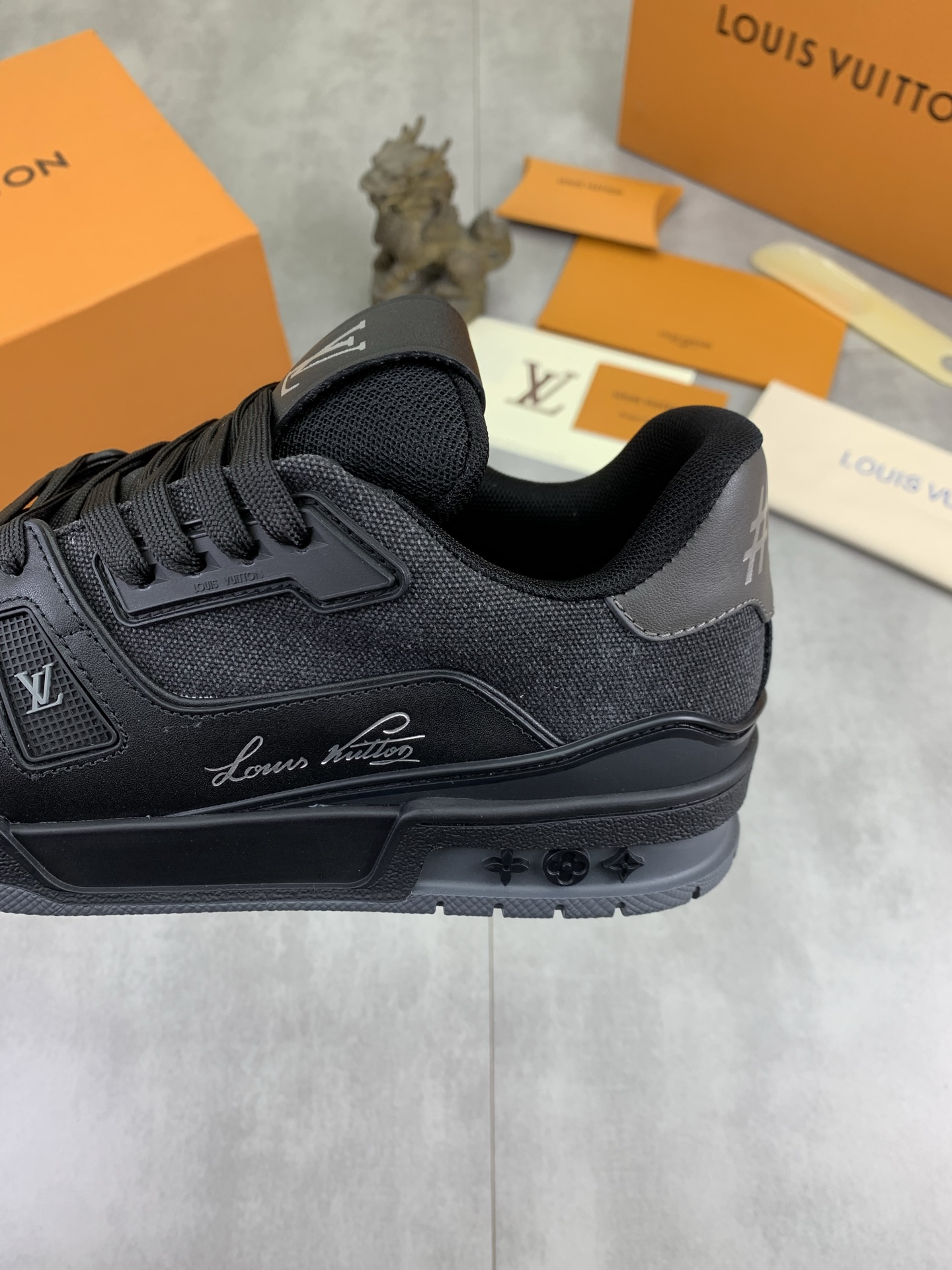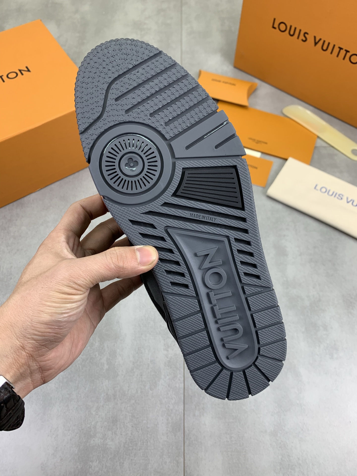 This shoes is AAAAA 1:1 quality (superb). Materials used are identical to the original ones. Louis Vuitton trademark marks are indistinguishable to the authentic. Photos take by actual shoes, what you receive will be 100% same with our photos.
