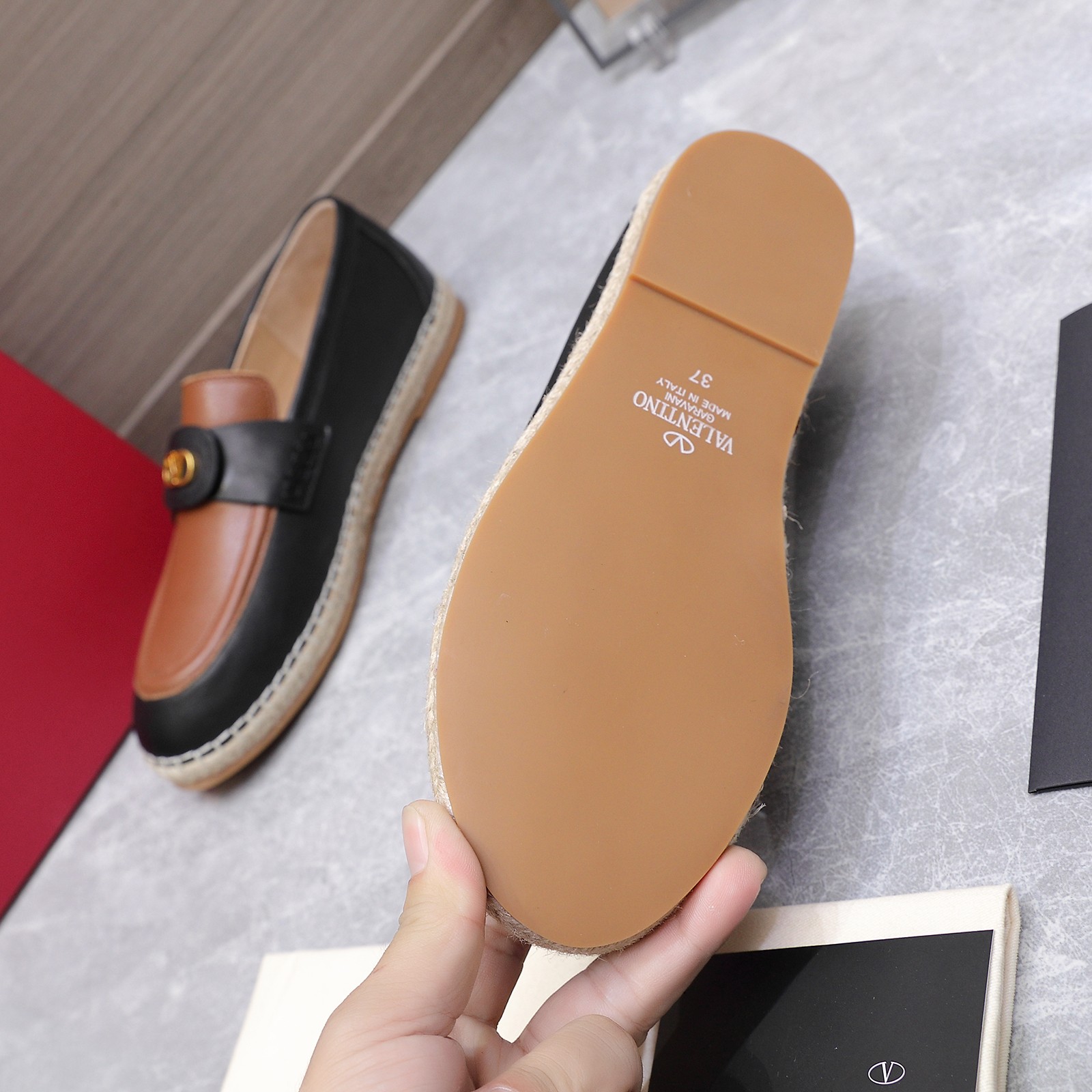 This shoes is AAAAA 1:1 quality (superb). Materials used are identical to the original ones. Valentino trademark marks are indistinguishable to the authentic. Photos take by actual shoes, what you receive will be 100% same with our photos.