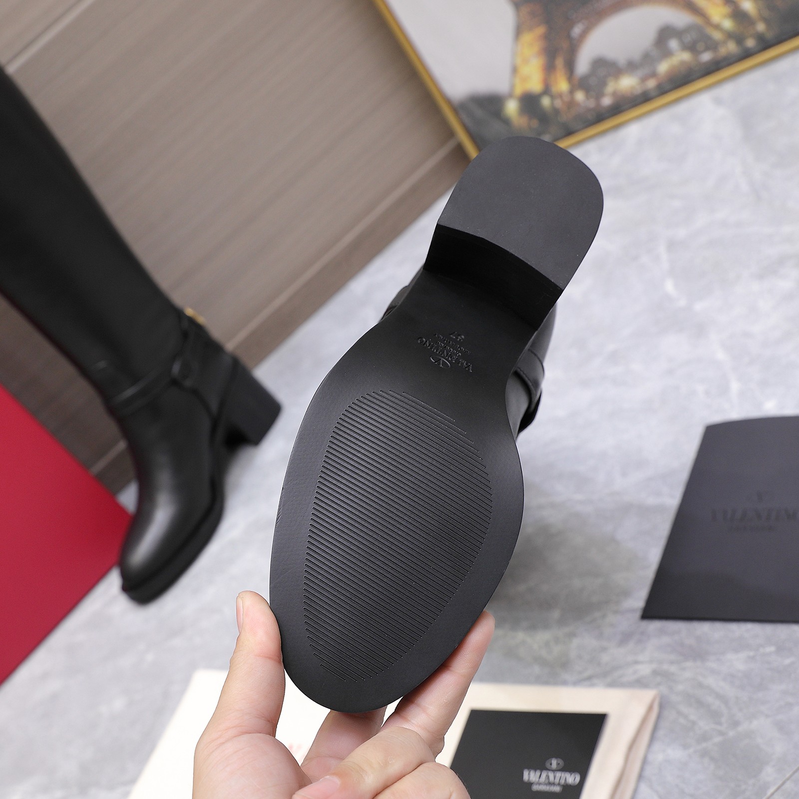 This shoes is AAAAA 1:1 quality (superb). Materials used are identical to the original ones. Valentino trademark marks are indistinguishable to the authentic. Photos take by actual shoes, what you receive will be 100% same with our photos.