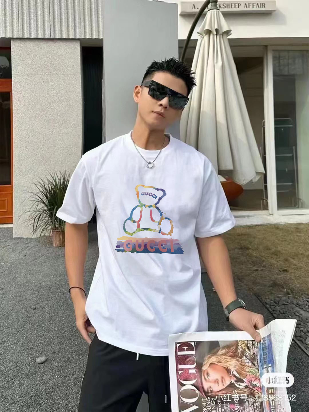 NO:4383806. The clothes is from Gucci designer.