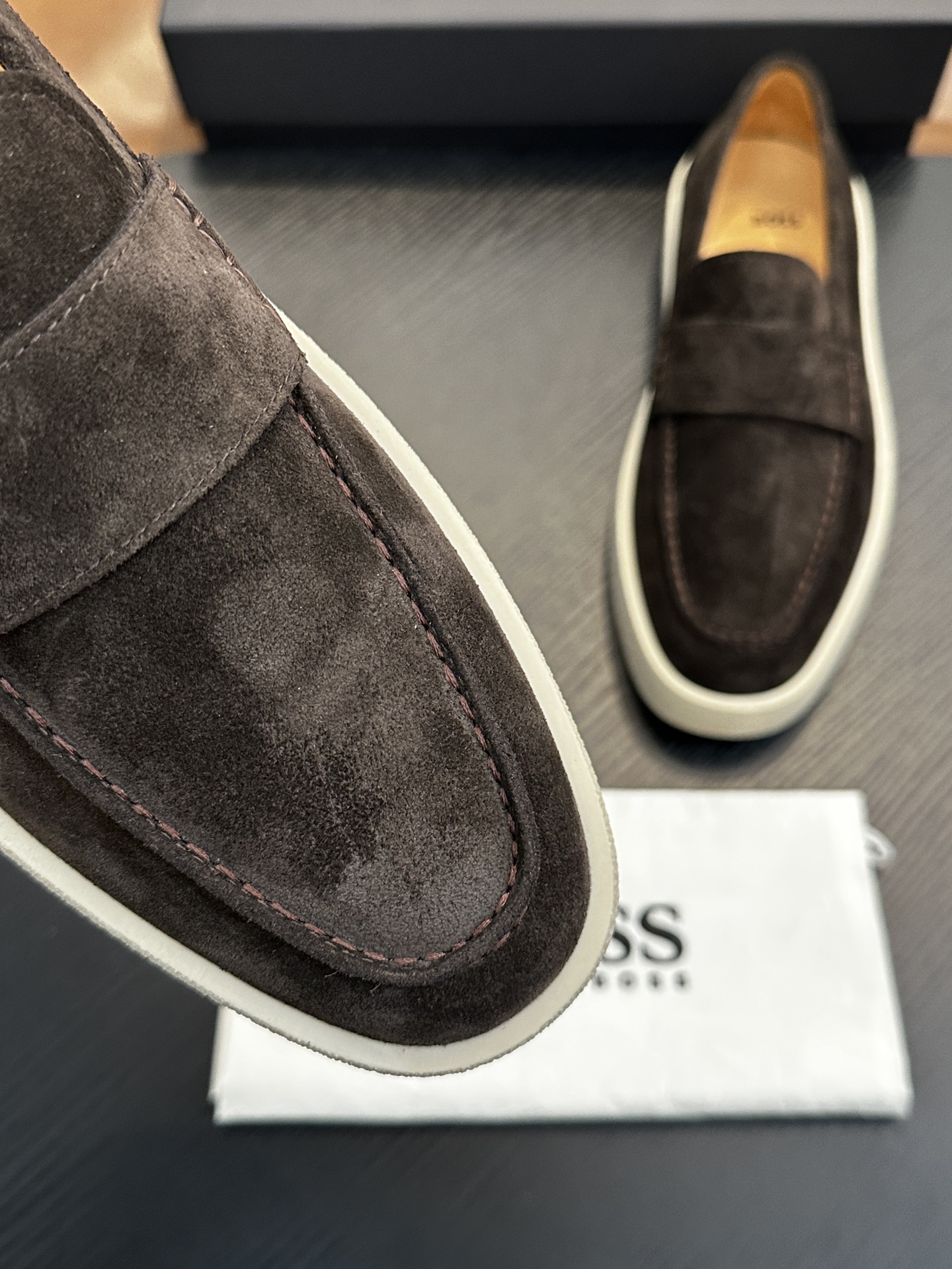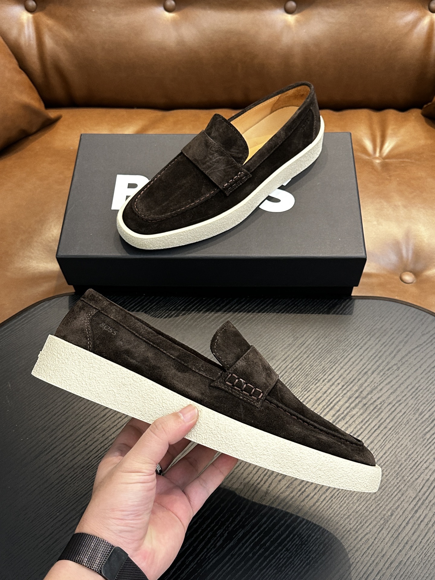 This shoes is AAAAA 1:1 quality (superb). Materials used are identical to the original ones. BOSS trademark marks are indistinguishable to the authentic. Photos take by actual shoes, what you receive will be 100% same with our photos.