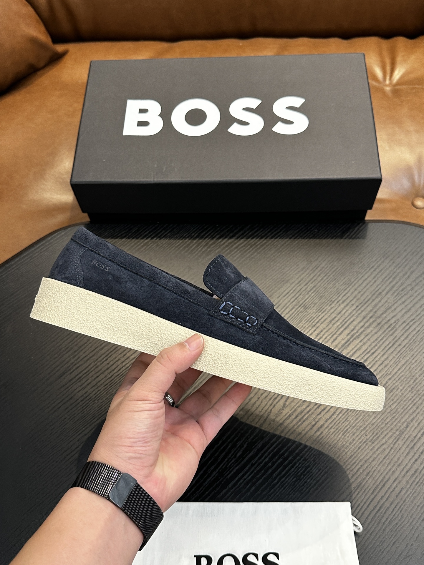 This shoes is AAAAA 1:1 quality (superb). Materials used are identical to the original ones. BOSS trademark marks are indistinguishable to the authentic. Photos take by actual shoes, what you receive will be 100% same with our photos.