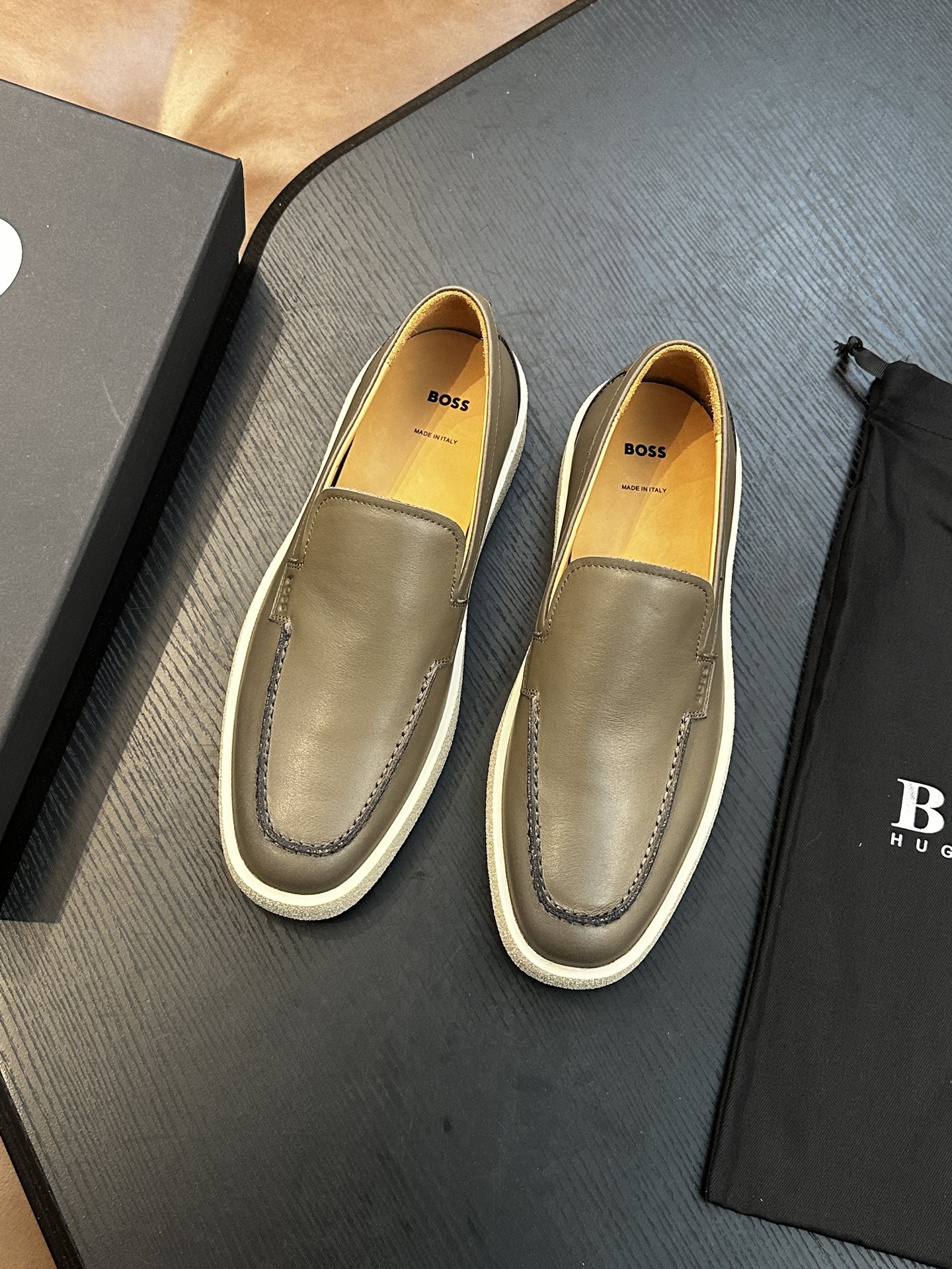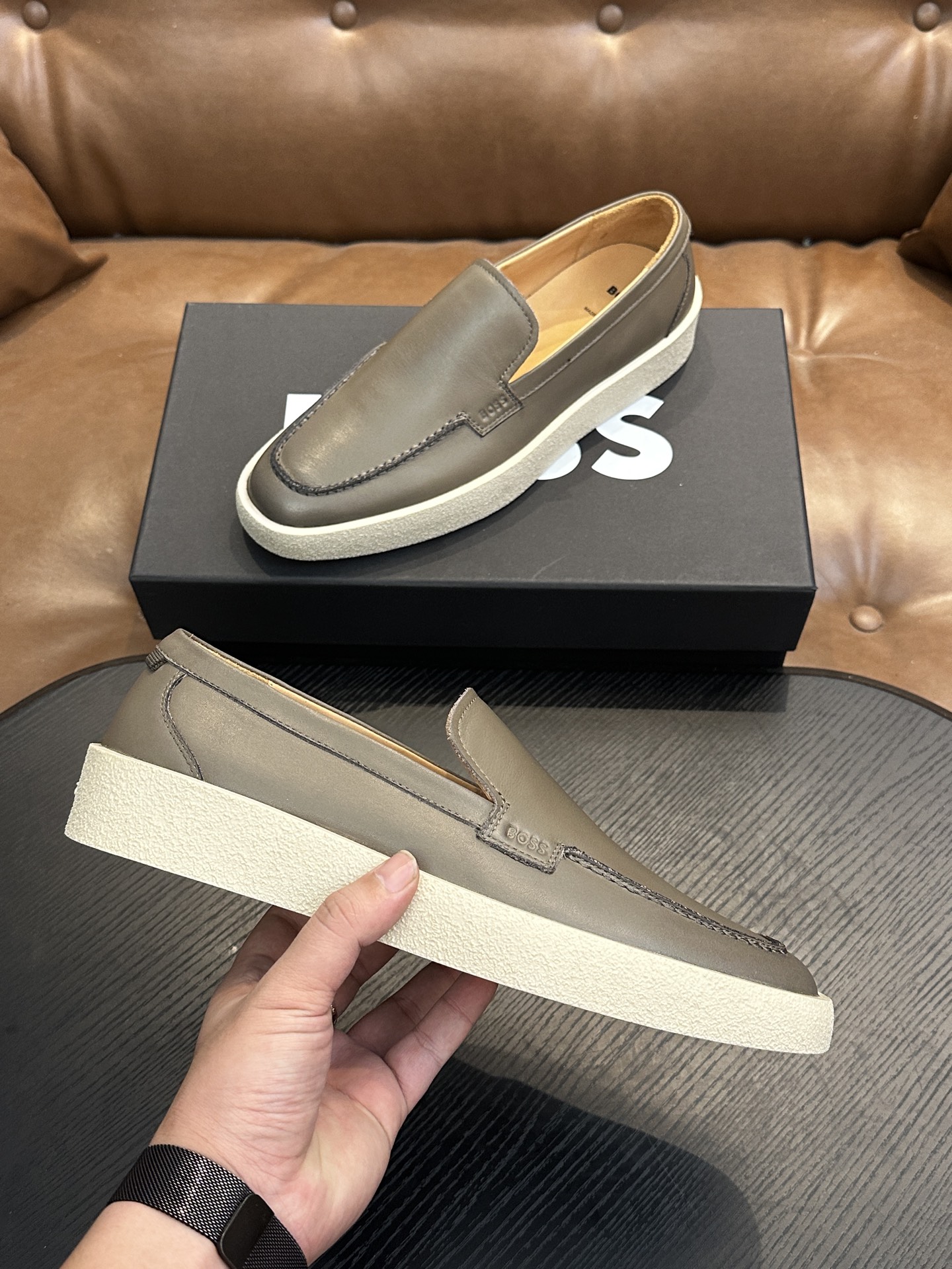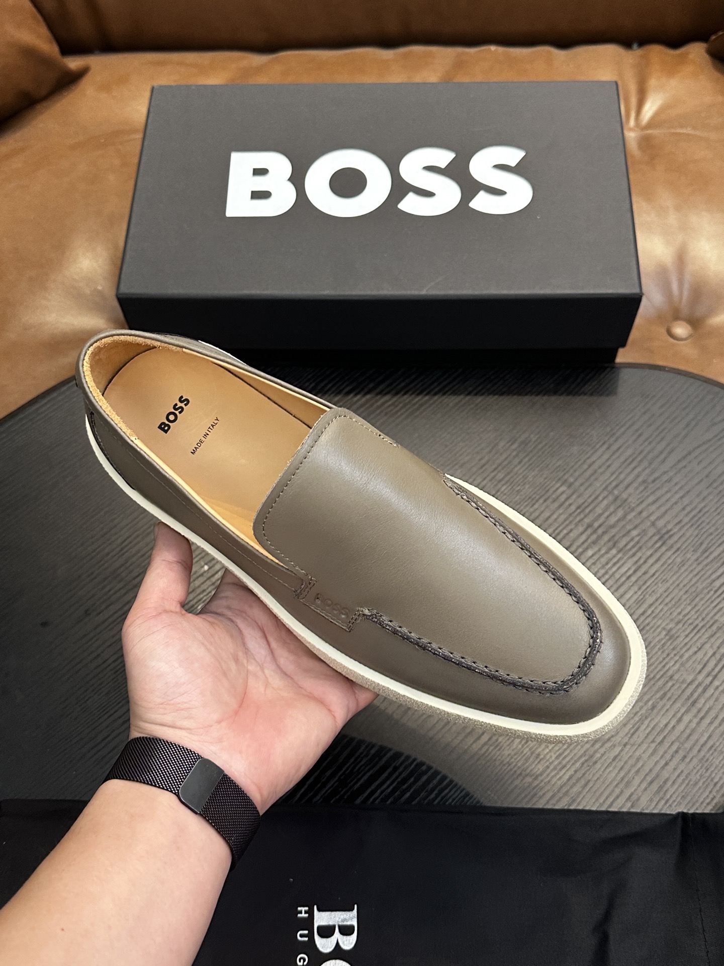 This shoes is AAAAA 1:1 quality (superb). Materials used are identical to the original ones. BOSS trademark marks are indistinguishable to the authentic. Photos take by actual shoes, what you receive will be 100% same with our photos.