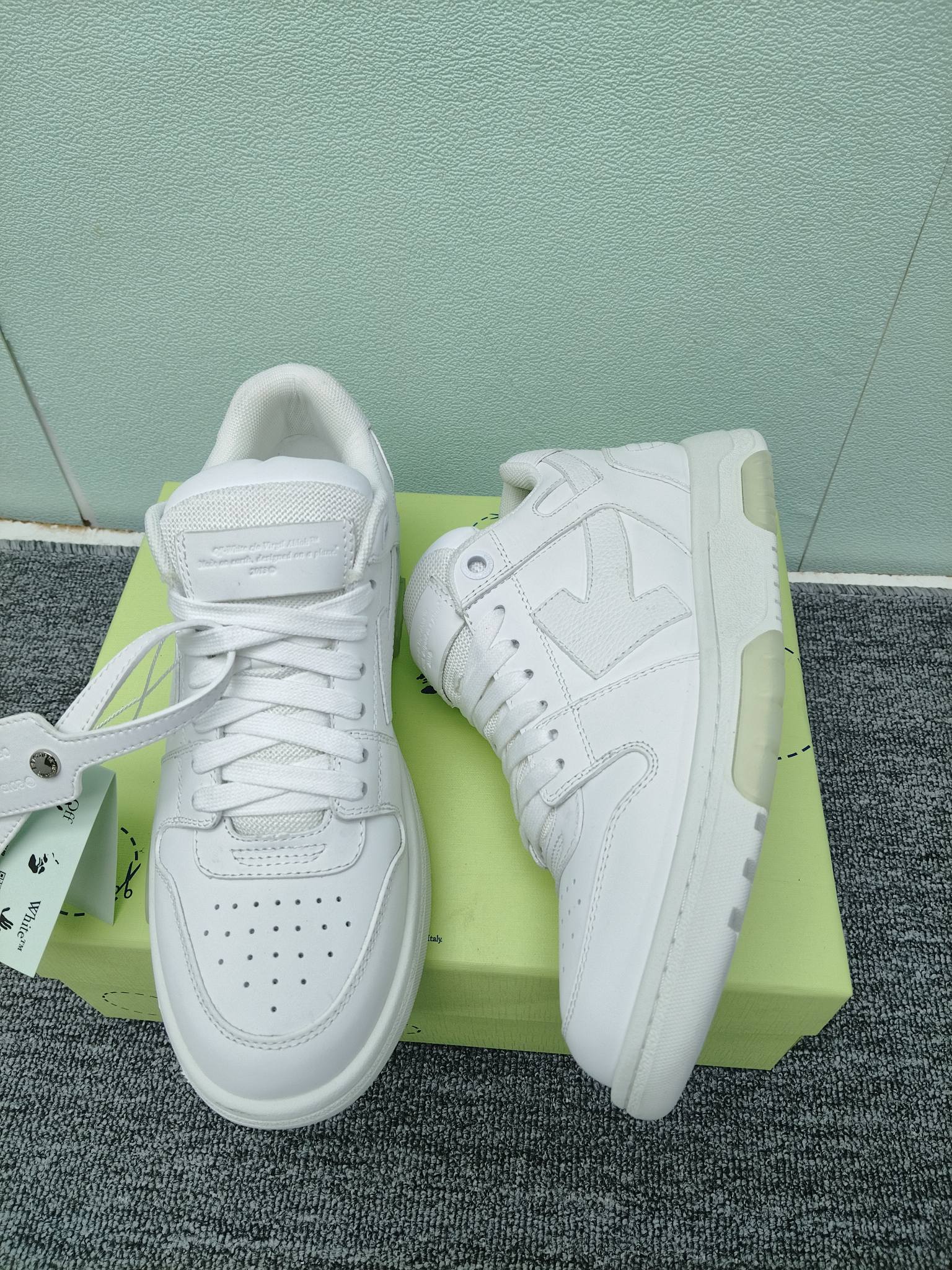 This shoes is AAAAA 1:1 quality (superb). Materials used are identical to the original ones. OFF WHITE trademark marks are indistinguishable to the authentic. Photos take by actual shoes, what you receive will be 100% same with our photos.