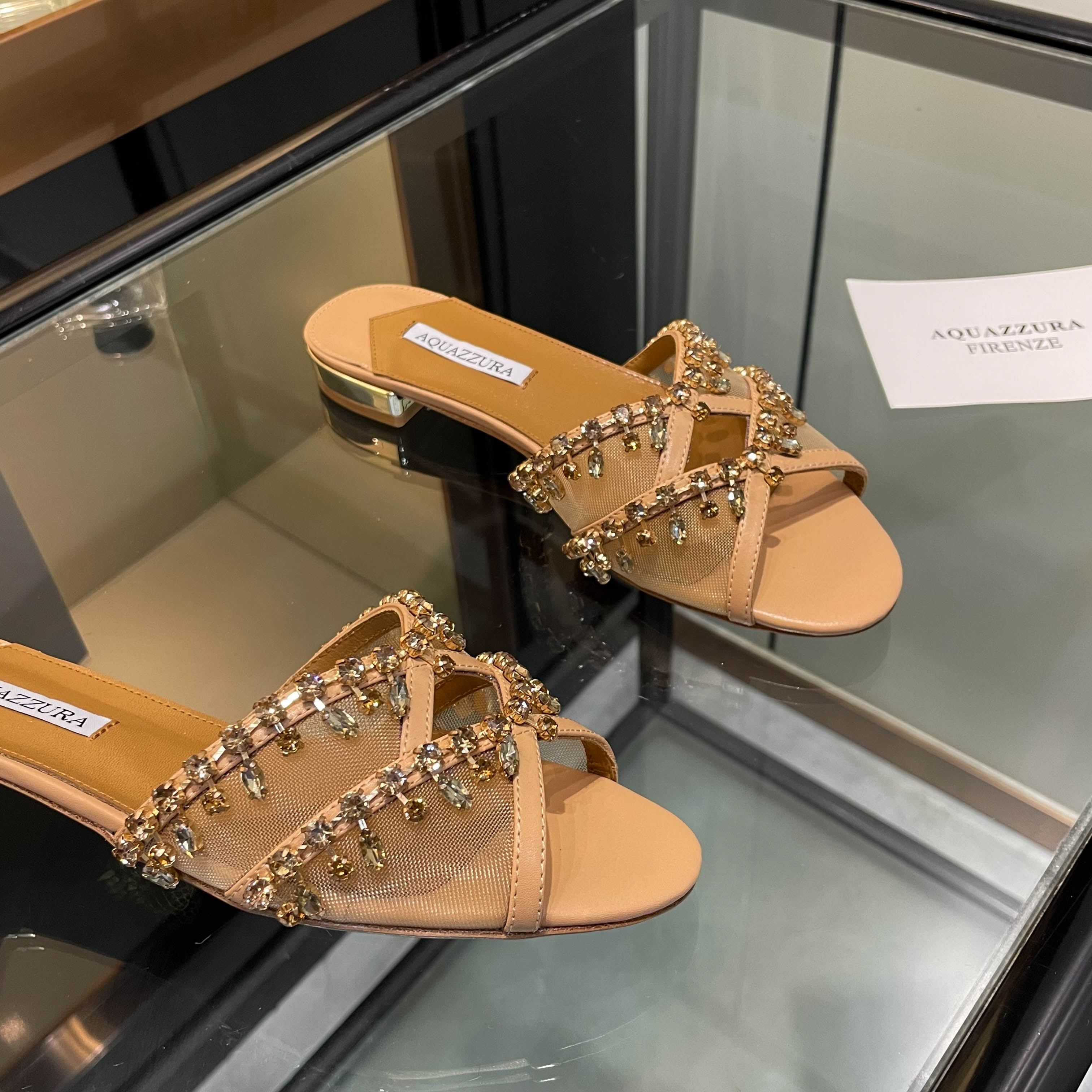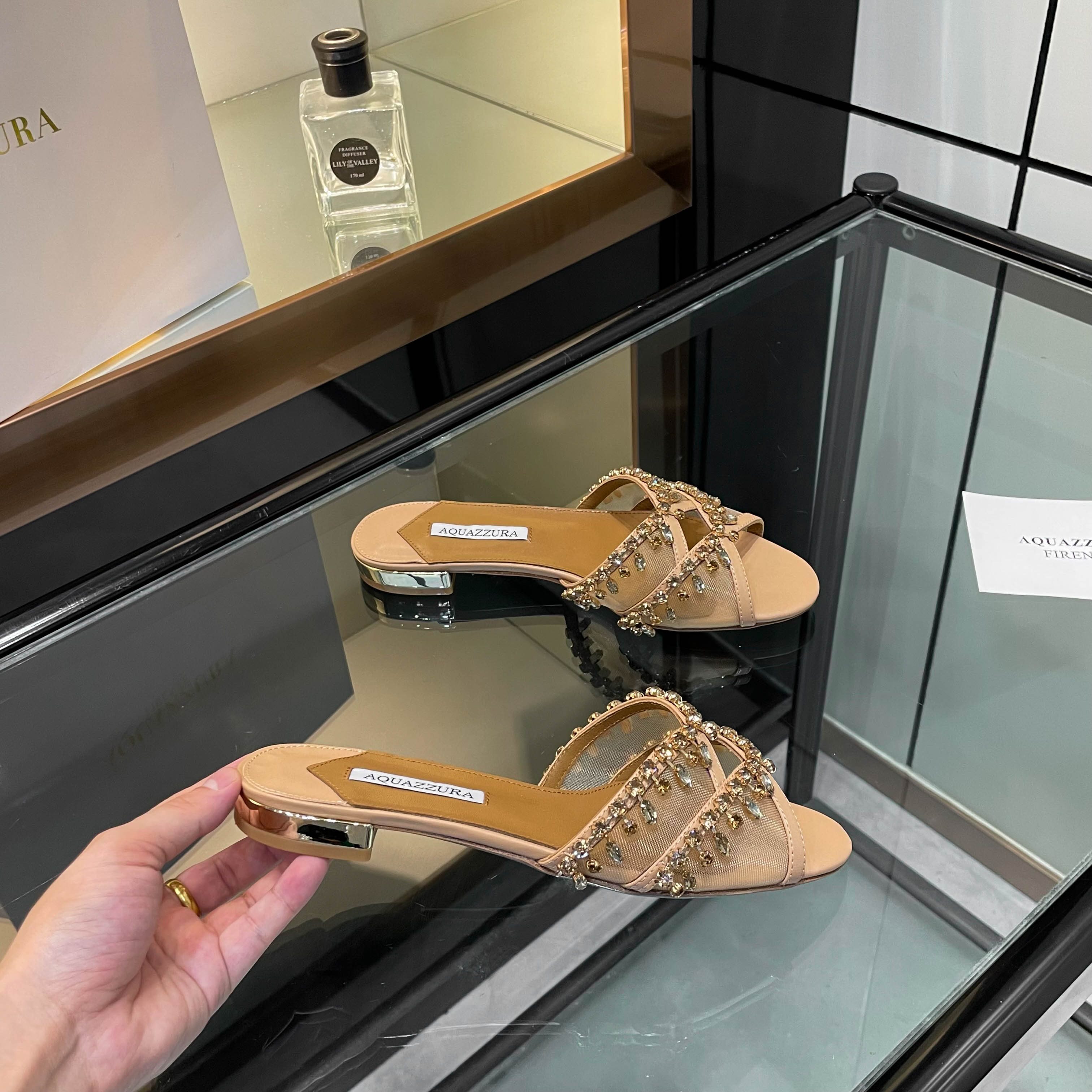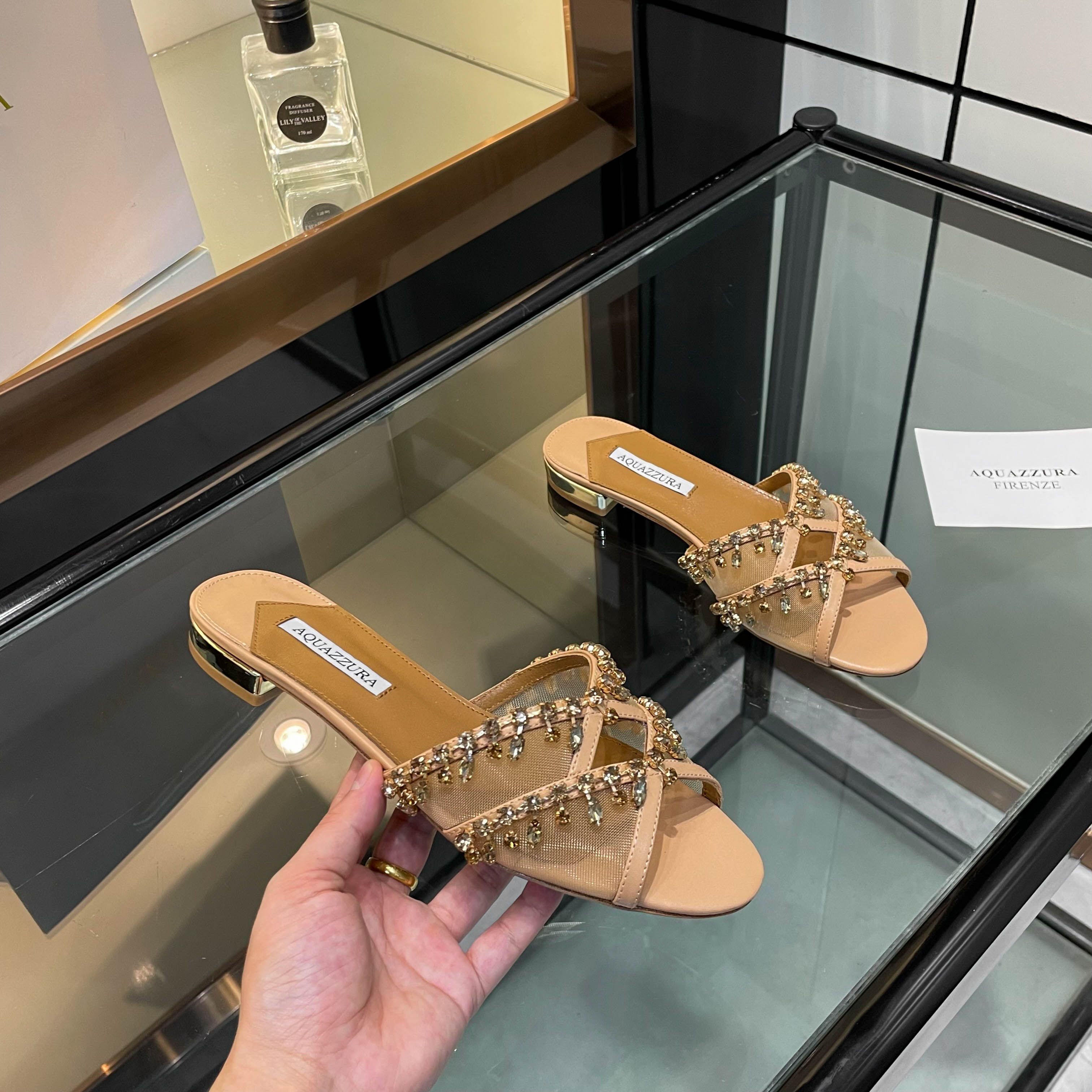 This shoes is AAAAA 1:1 quality (superb). Materials used are identical to the original ones. Aquazzura trademark marks are indistinguishable to the authentic. Photos take by actual shoes, what you receive will be 100% same with our photos.