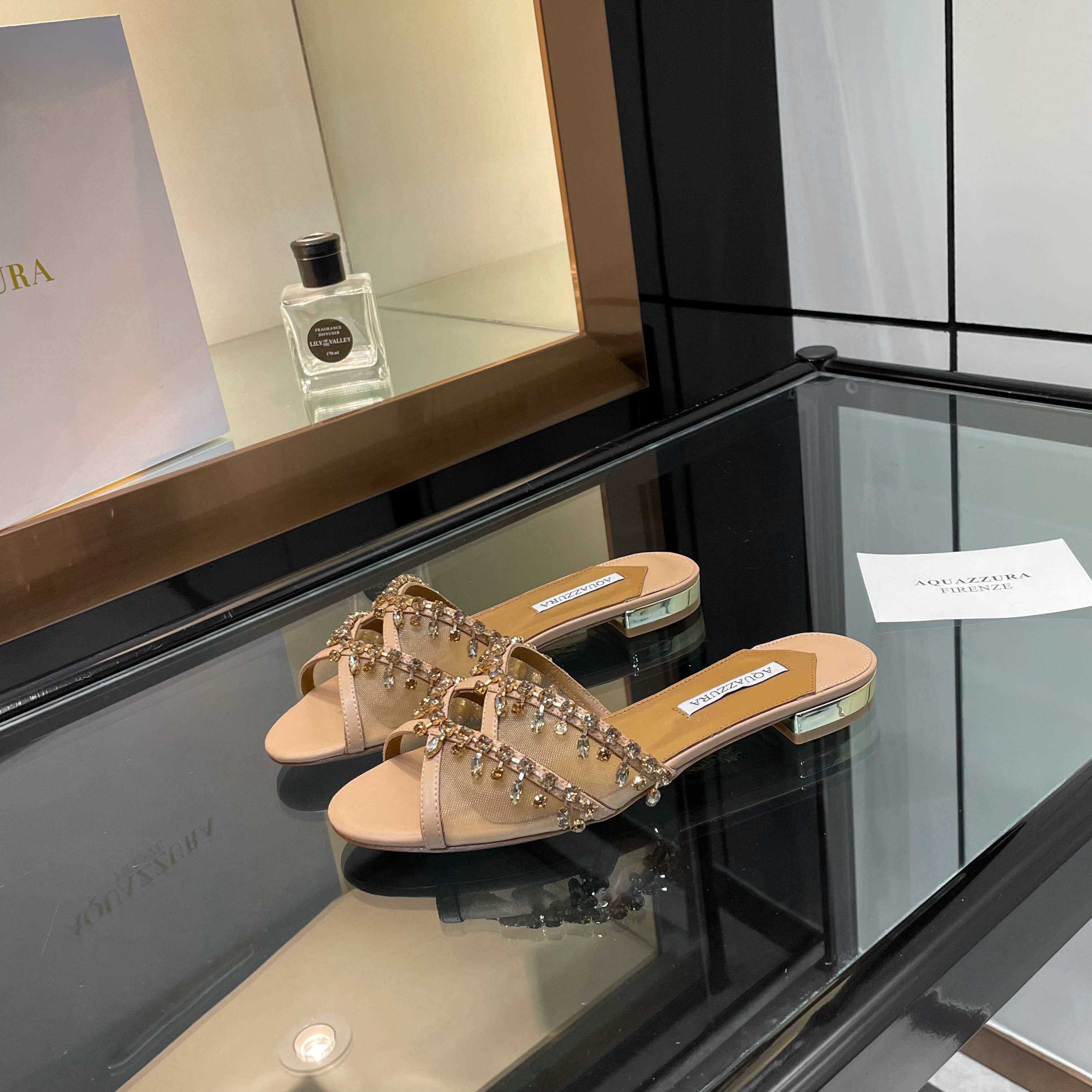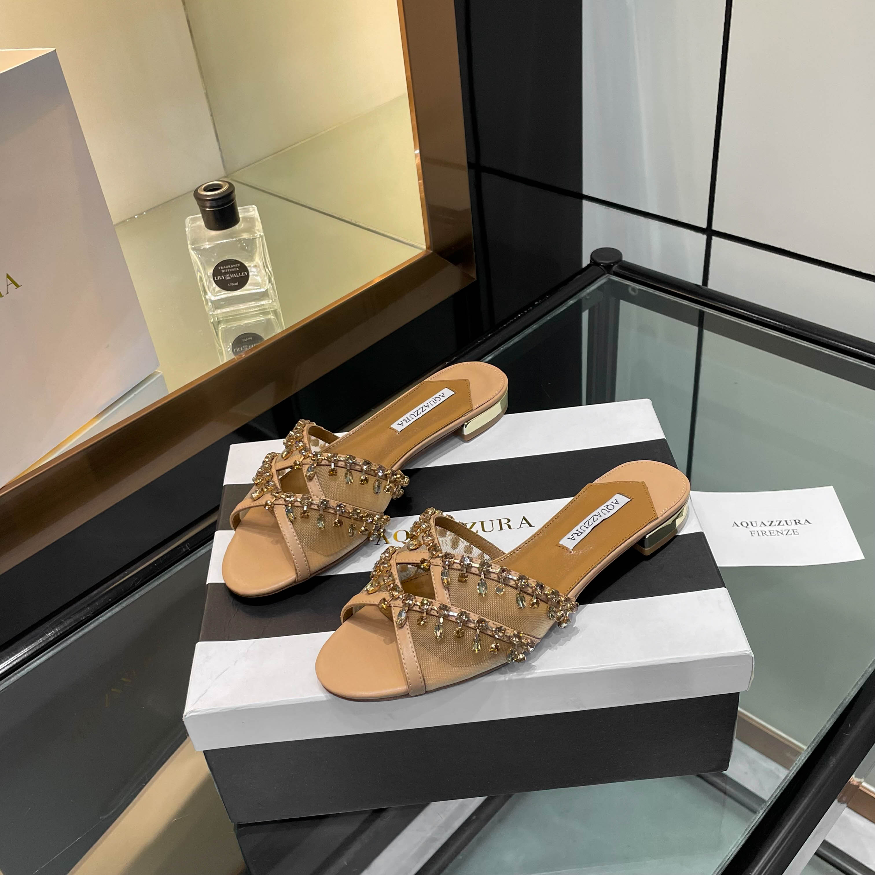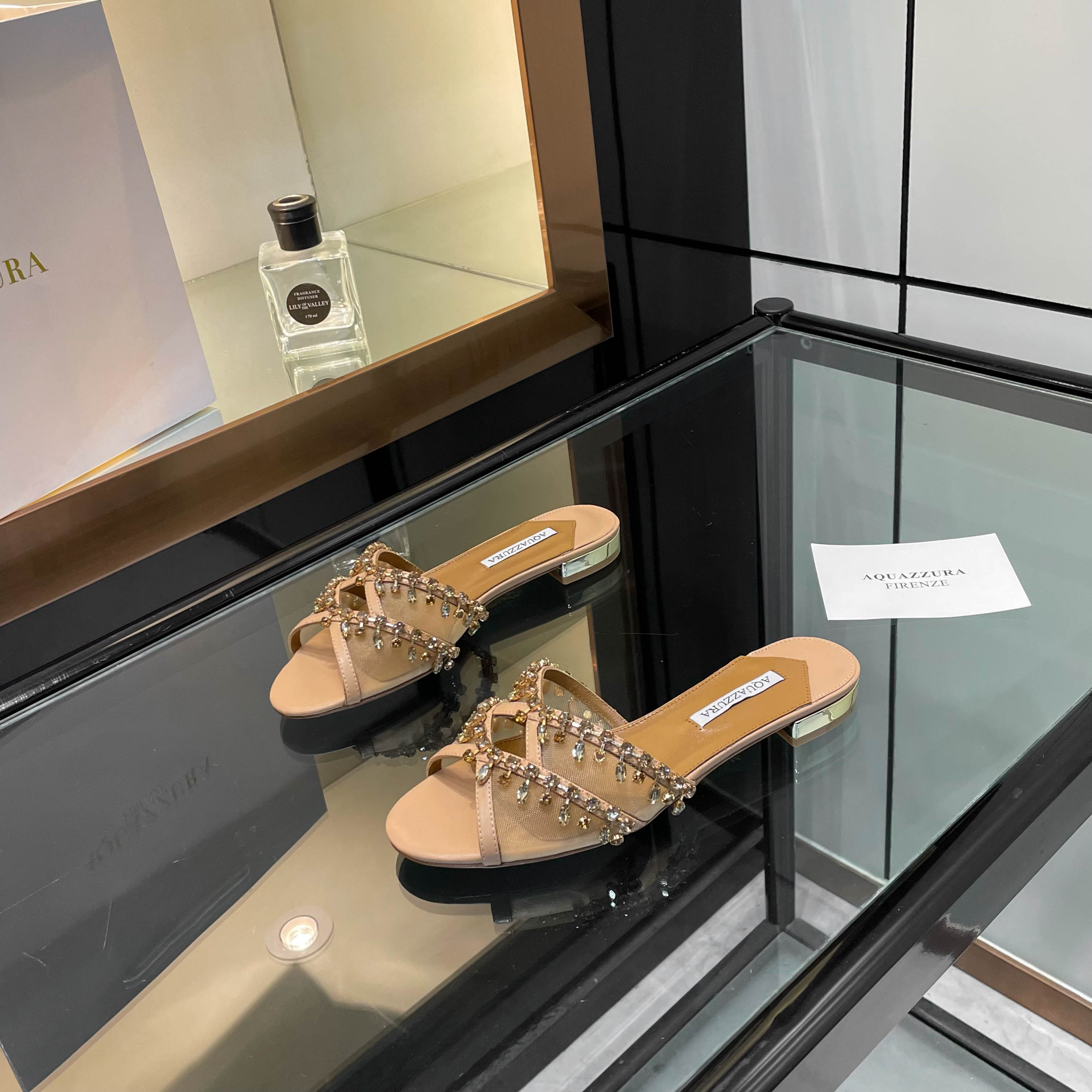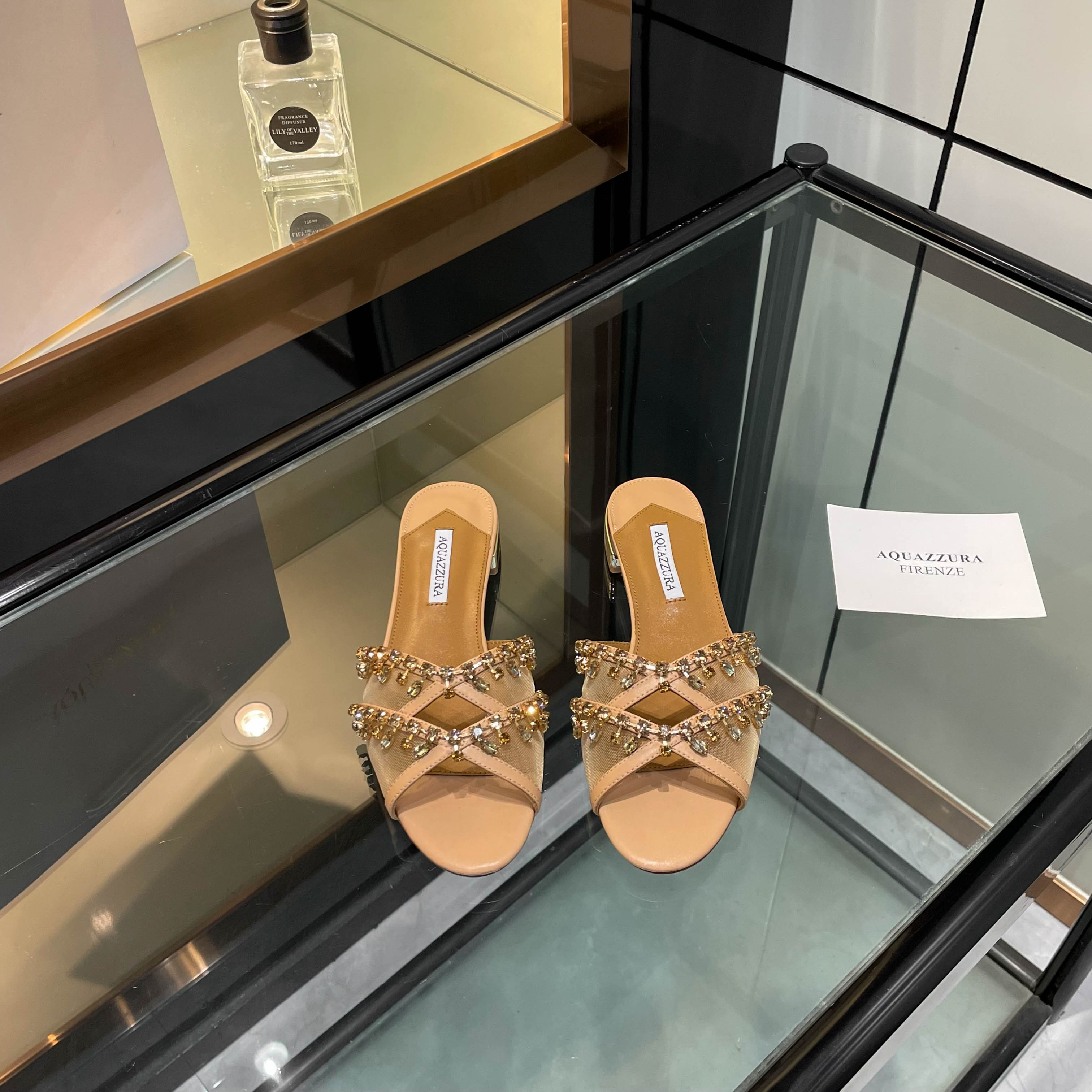 This shoes is AAAAA 1:1 quality (superb). Materials used are identical to the original ones. Aquazzura trademark marks are indistinguishable to the authentic. Photos take by actual shoes, what you receive will be 100% same with our photos.