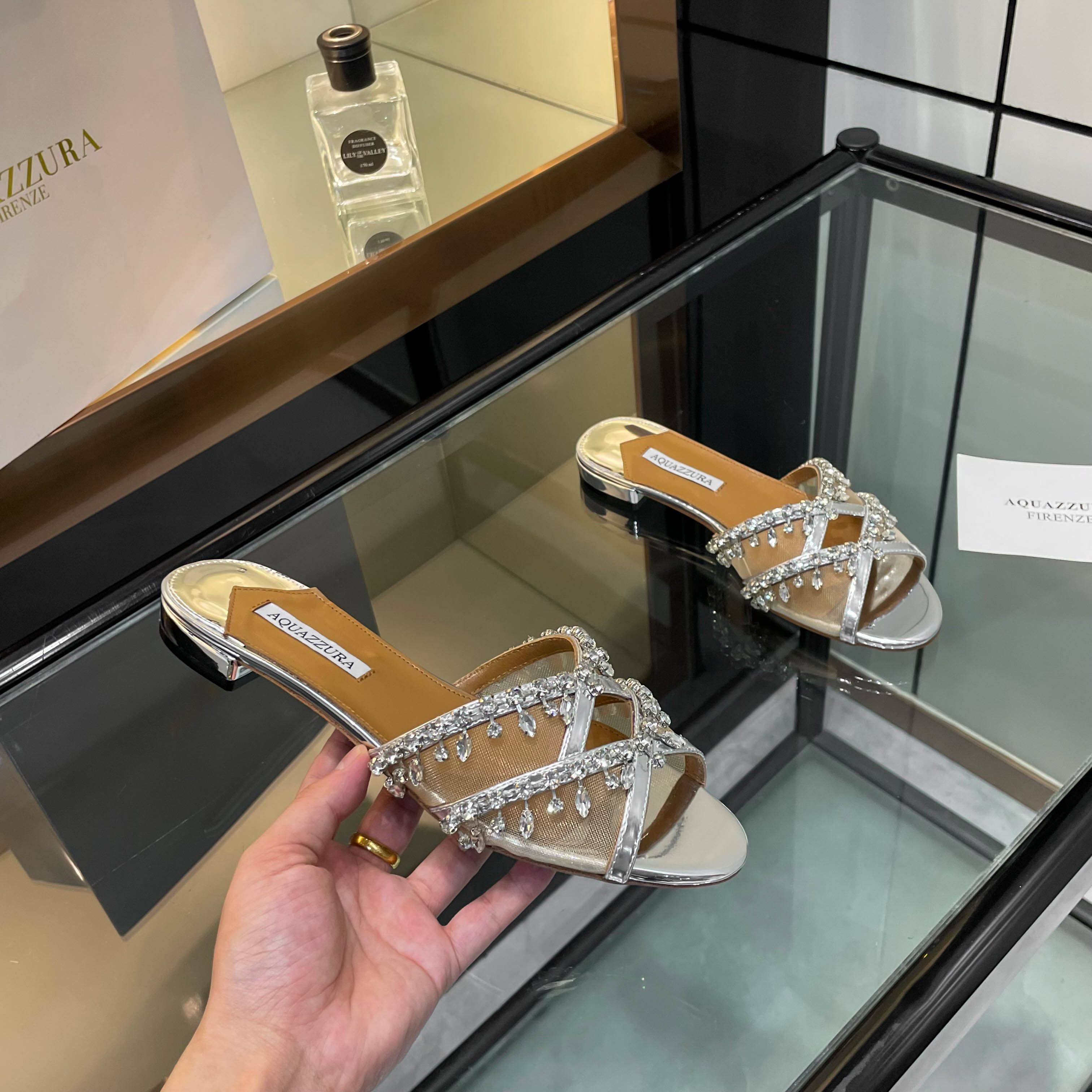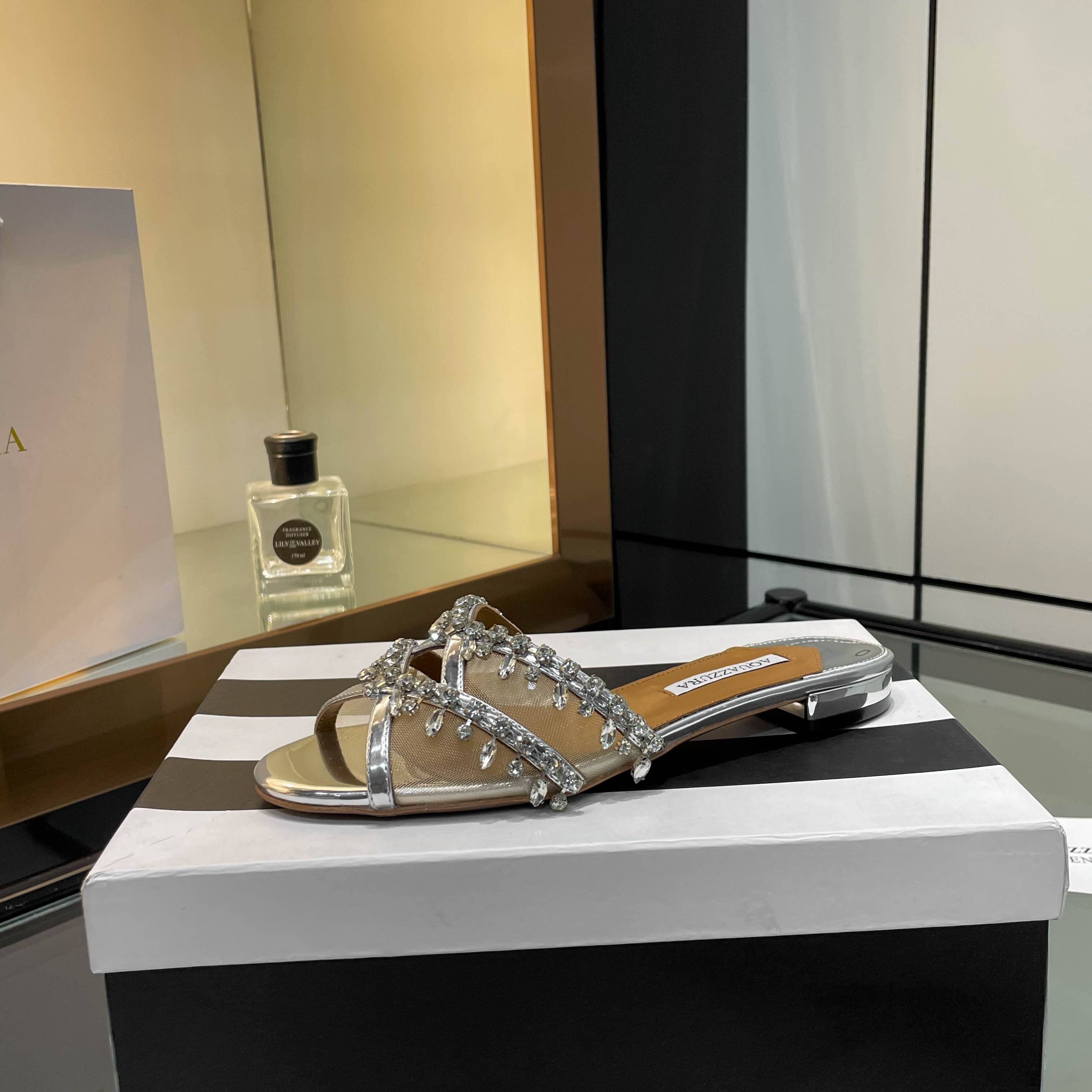 This shoes is AAAAA 1:1 quality (superb). Materials used are identical to the original ones. Aquazzura trademark marks are indistinguishable to the authentic. Photos take by actual shoes, what you receive will be 100% same with our photos.